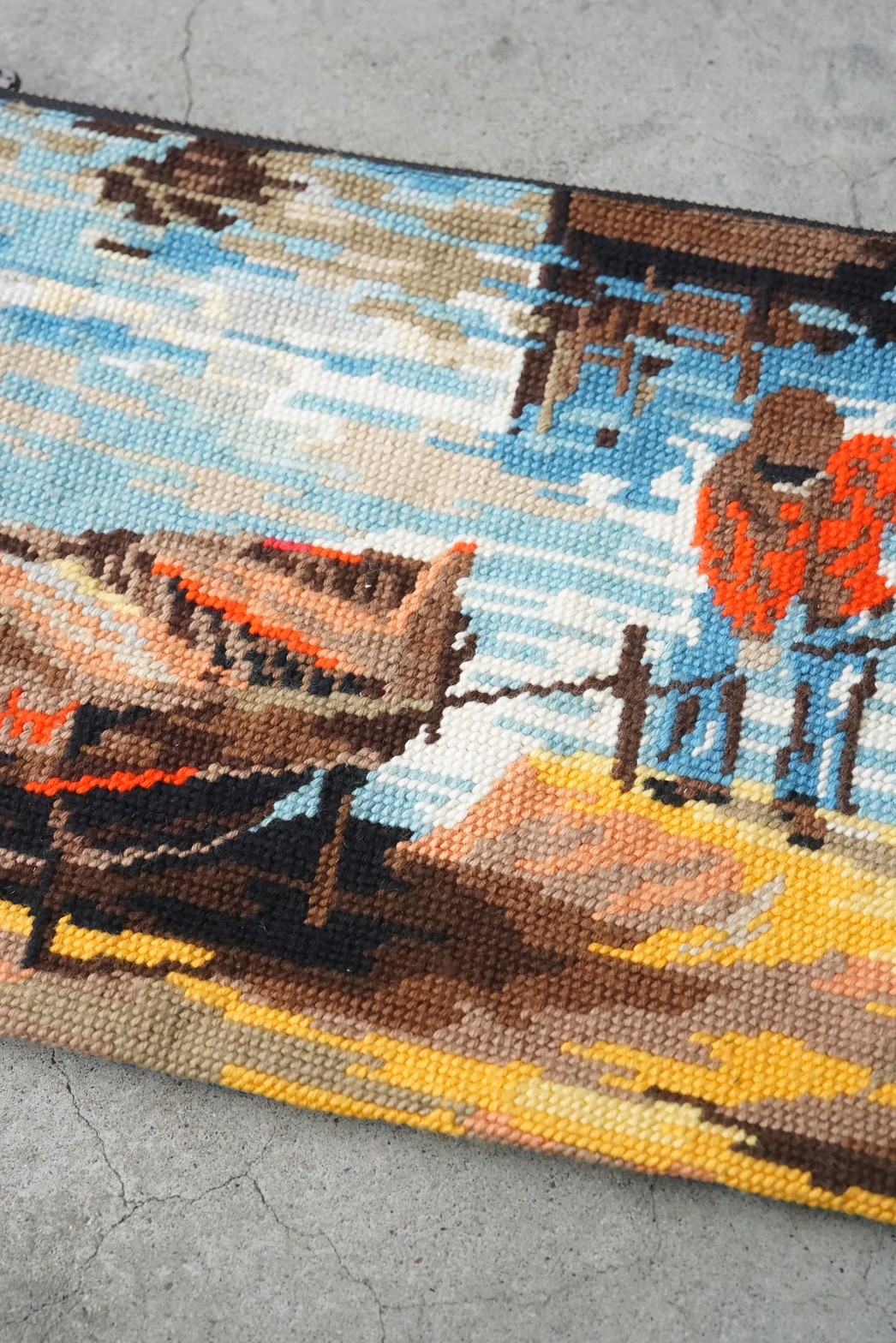 メッシュ状の土台布(麻やキャンバス地など)に毛糸で刺繍を施し、