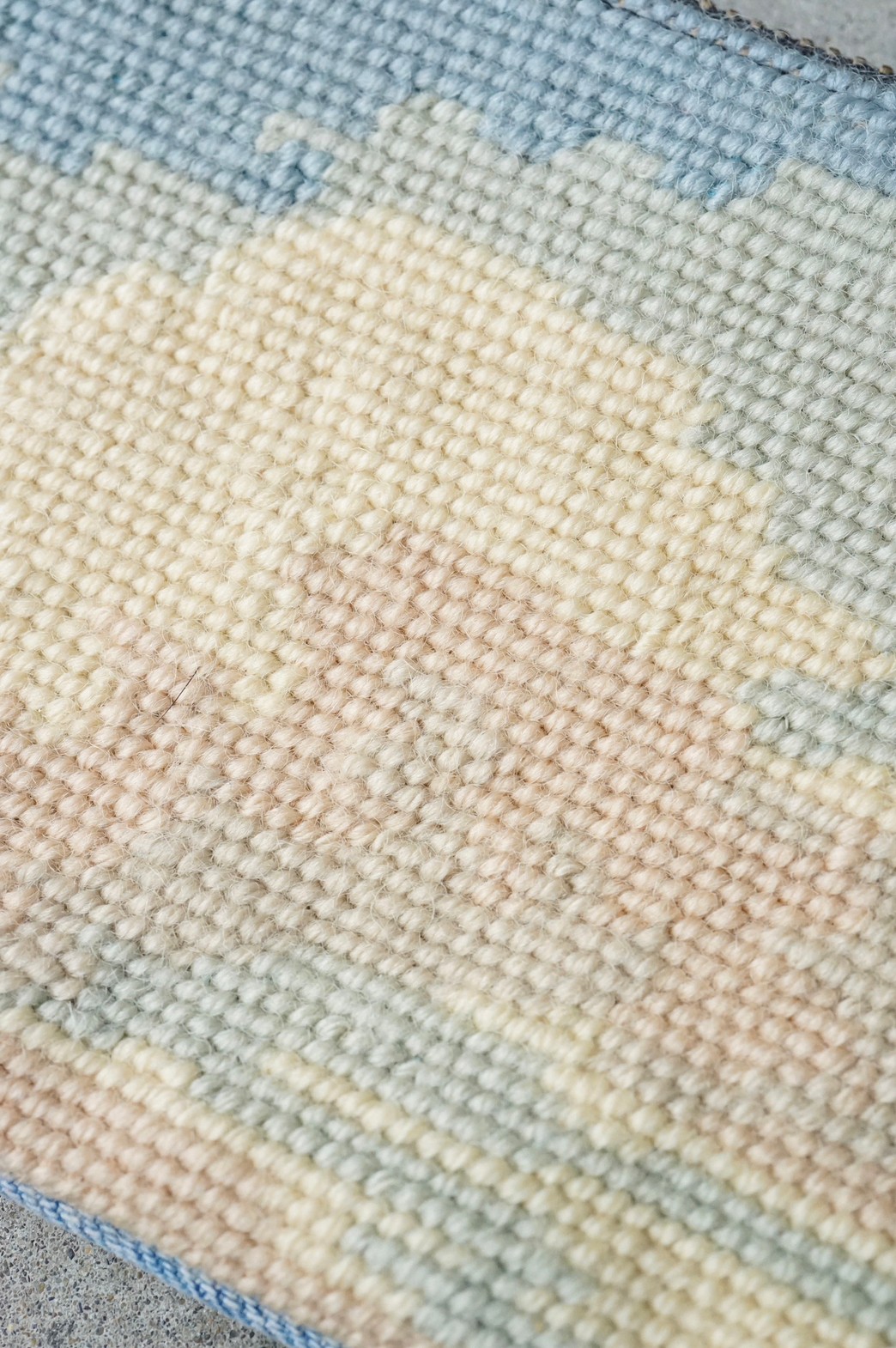 図柄は織り目にそって構成され、毛糸の織物のような風合いに仕上がります。