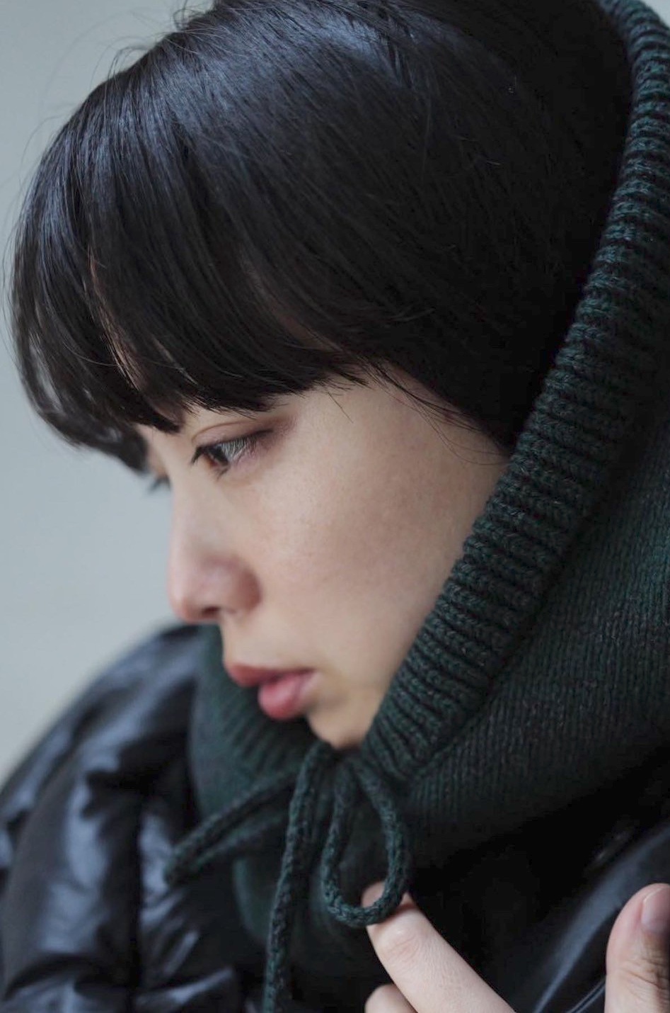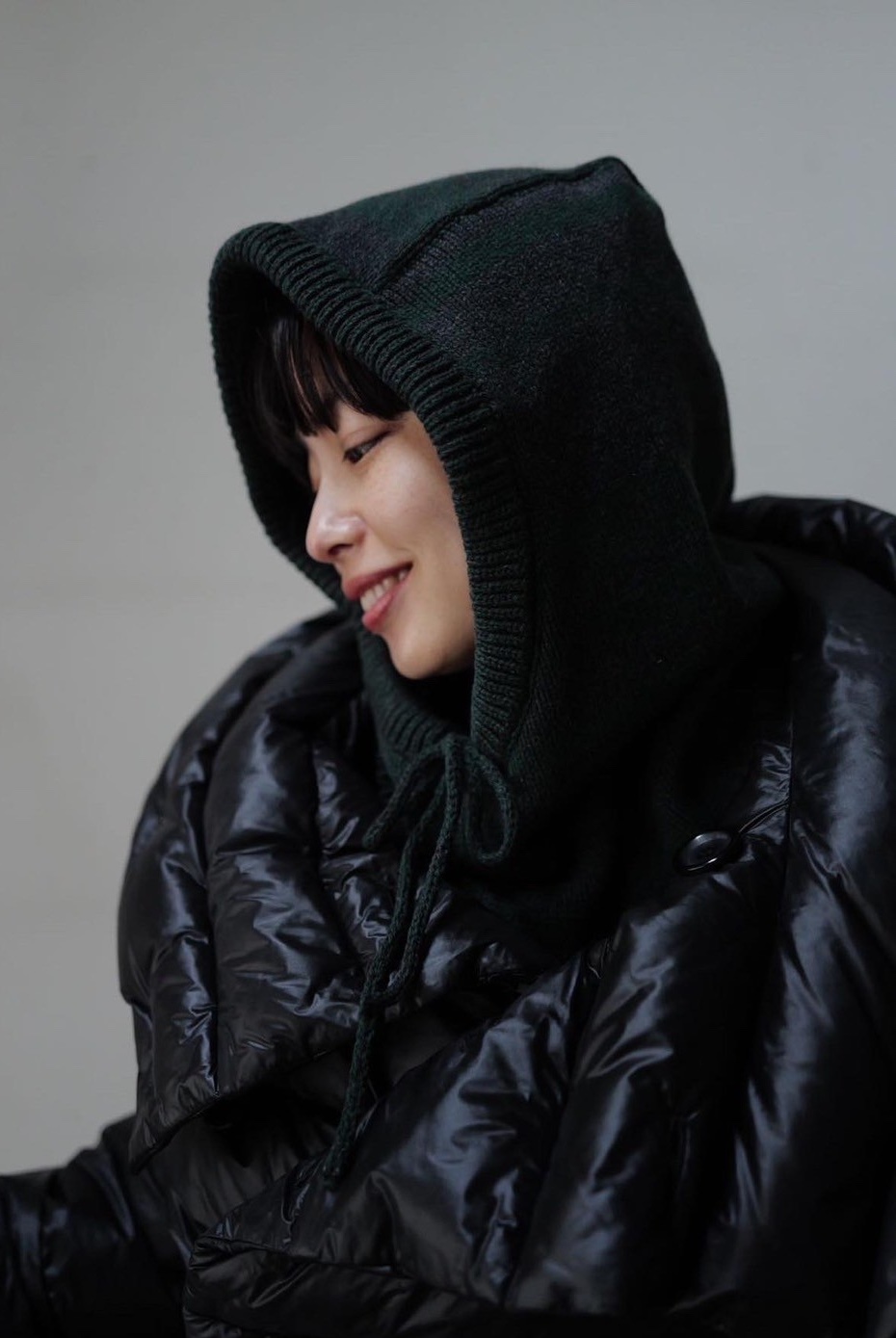 Recycled Cashmere Balaclava/GREEN×CHARCOAL