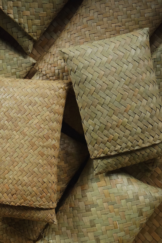 水草のカゴはタイ南部の村のあちこちのご家族によって、
