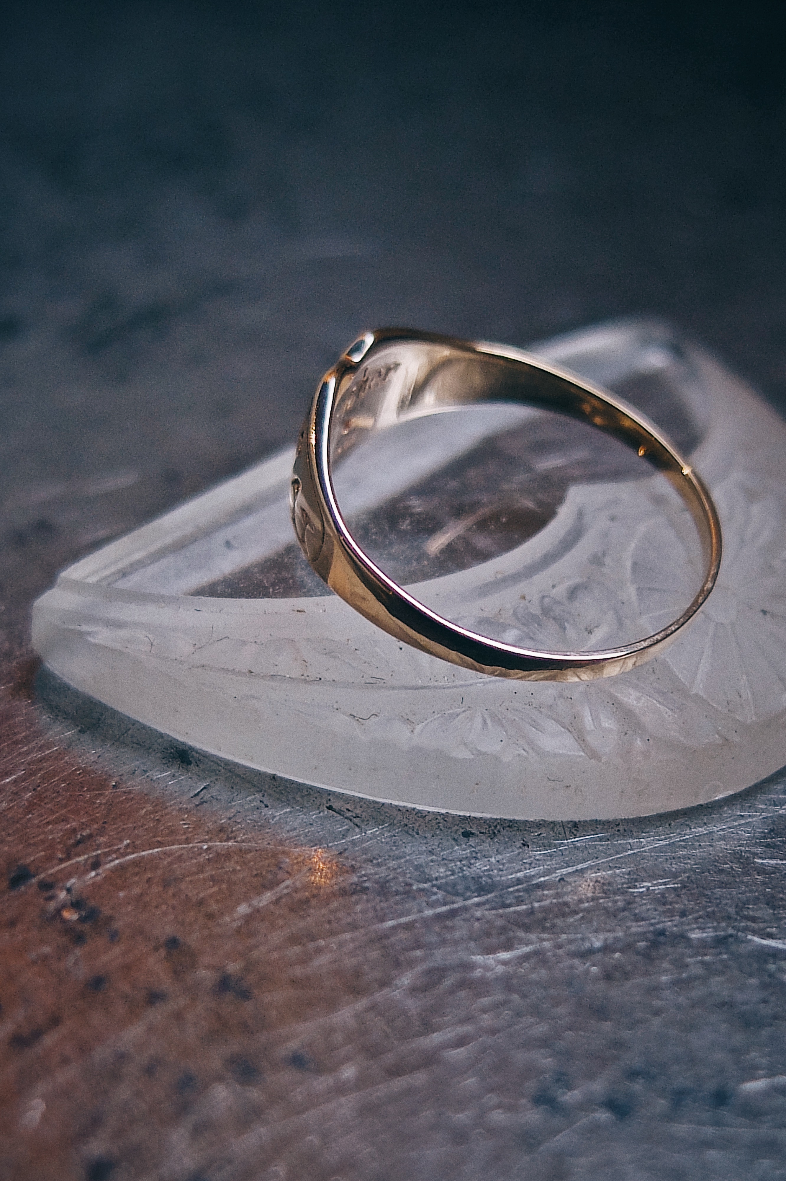 ハートモチーフのなかに小さな石が埋め込まれたリング