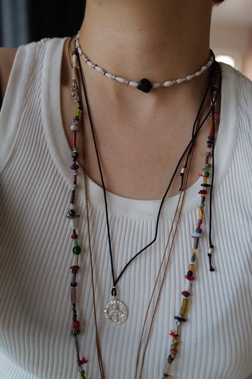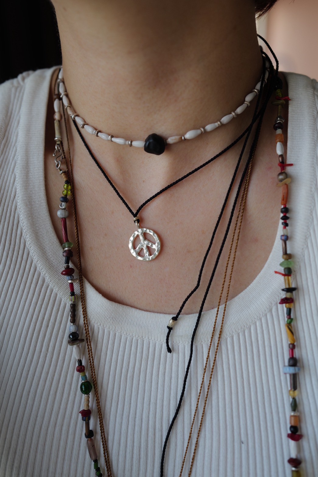 日本製のシルクの丸紐に、アフリカンメタルビーズを組み合わせたネックレス。