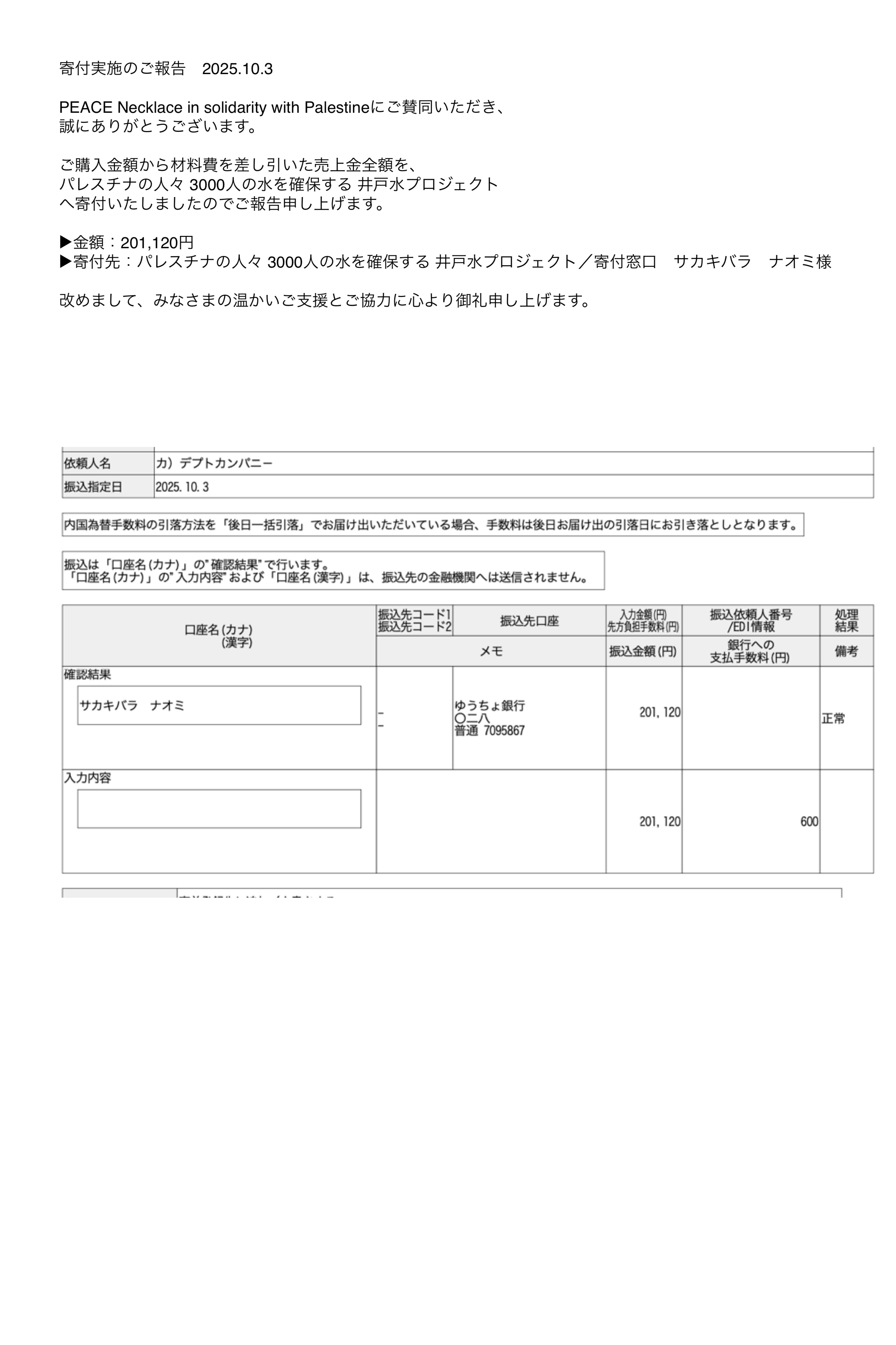 PEACE Necklace in solidarity with Palestineにご賛同いただき、
