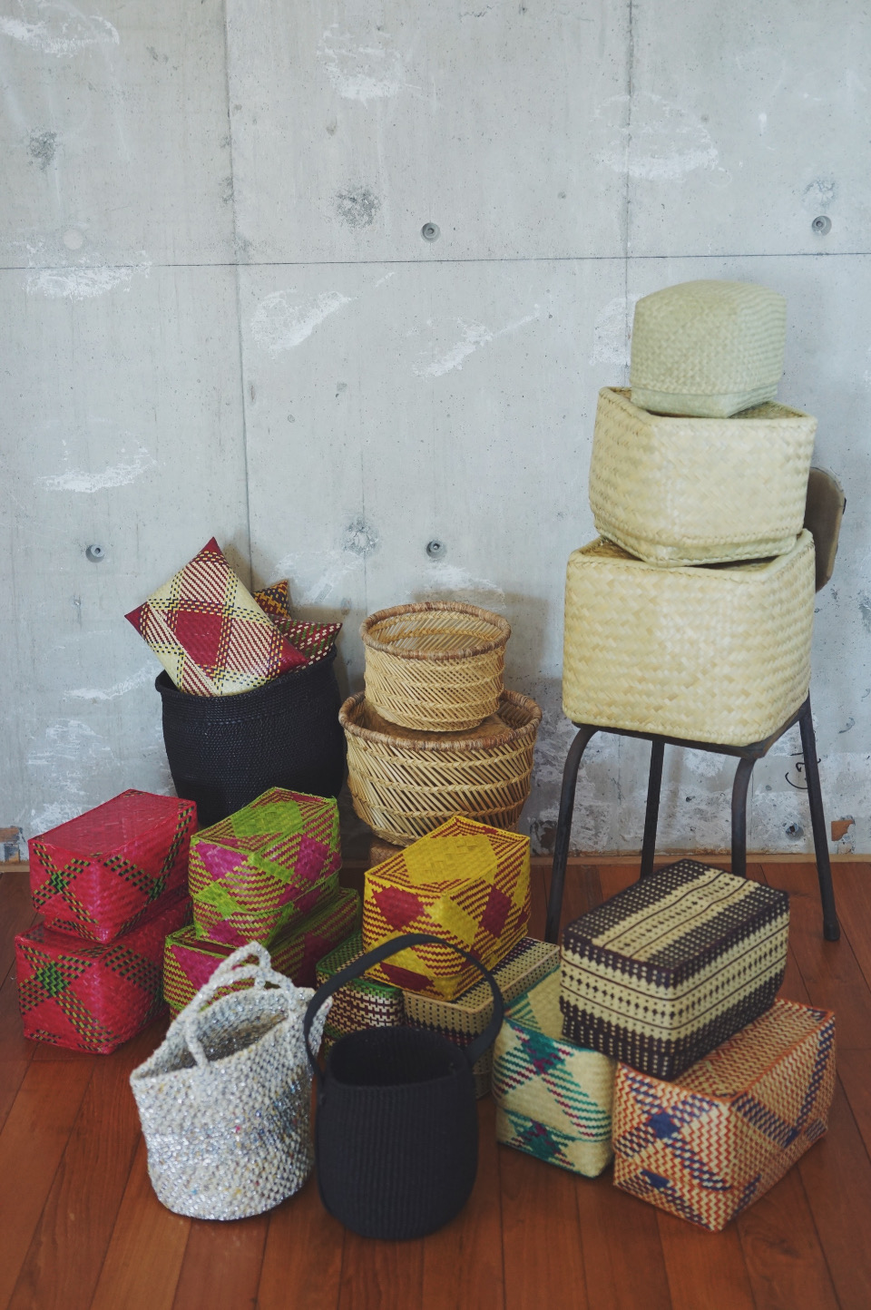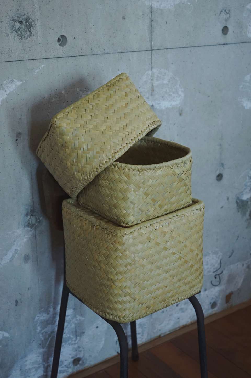‘リンダ’と呼ばれる水草(ズズル)で編まれたスクエア型の蓋付きソフトボックス。