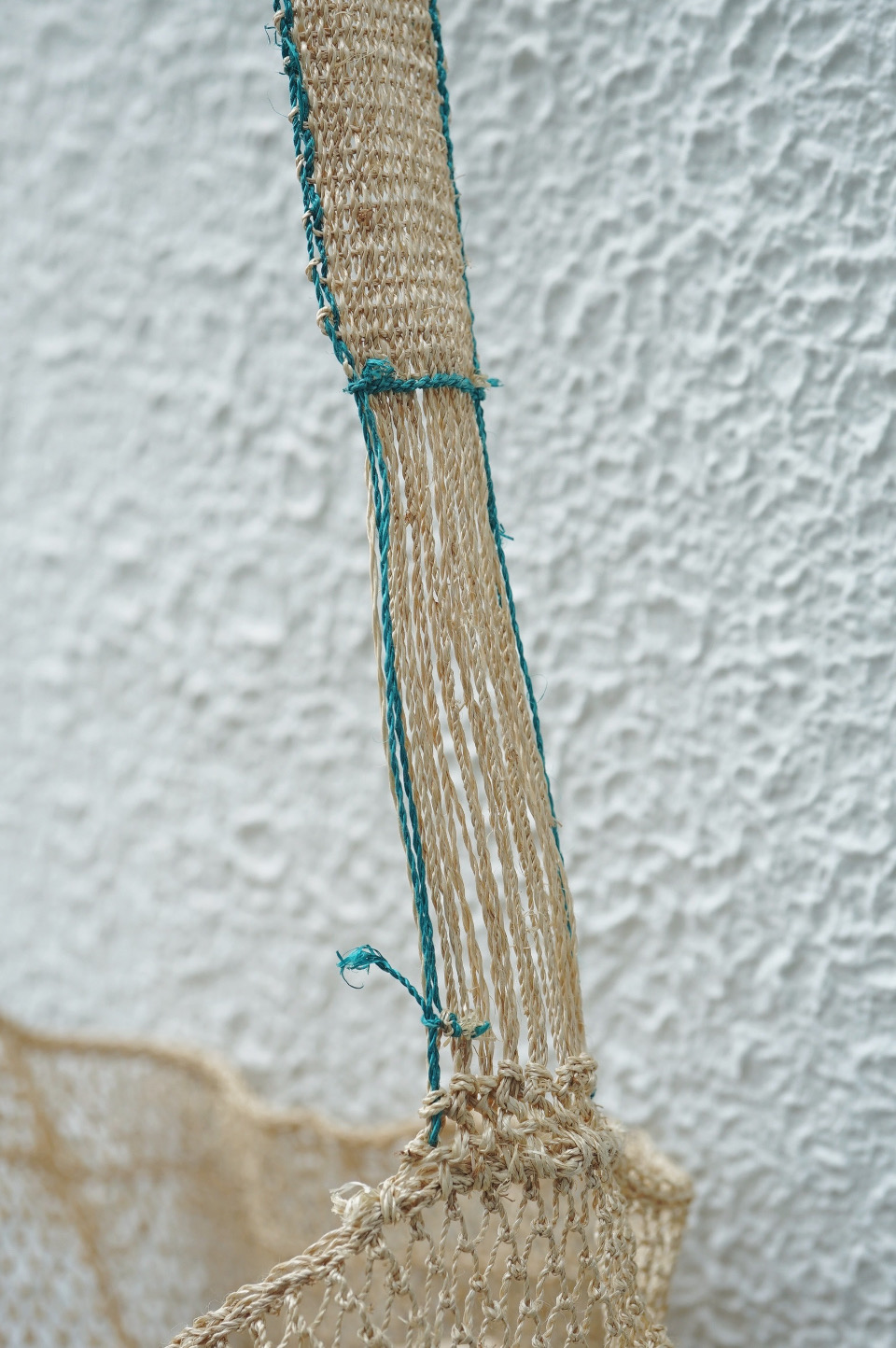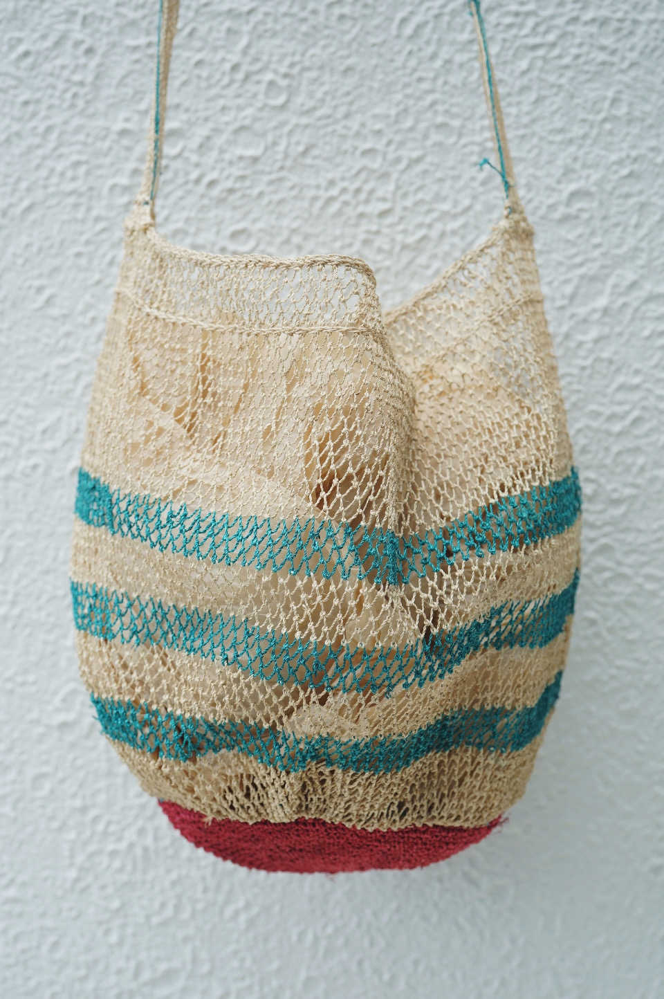 こちらのバッグたちも漁網の技法を用いた編み地で