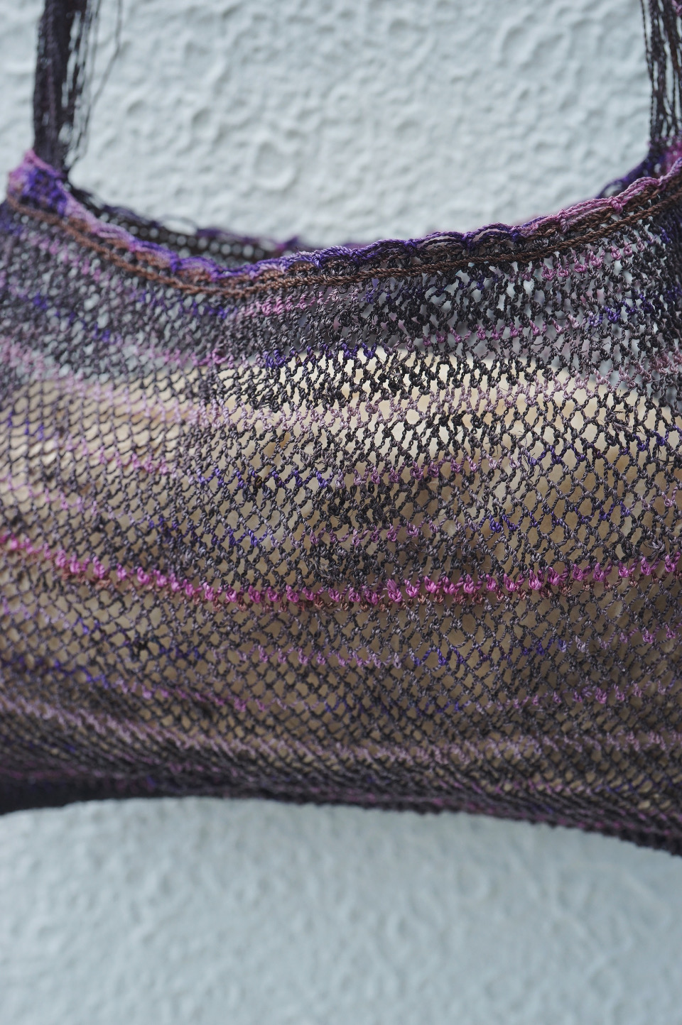 こちらのバッグたちも漁網の技法を用いた編み地で