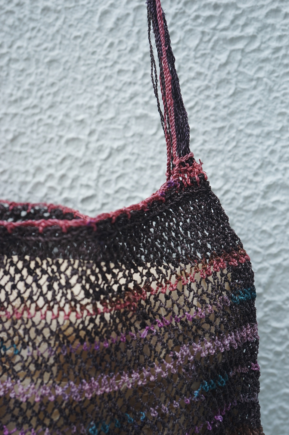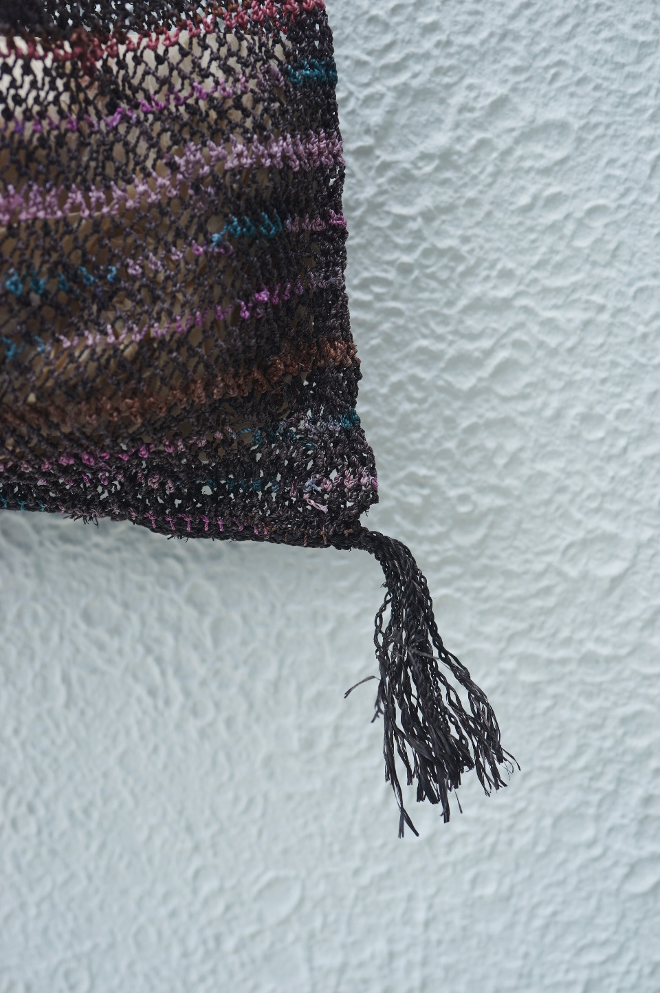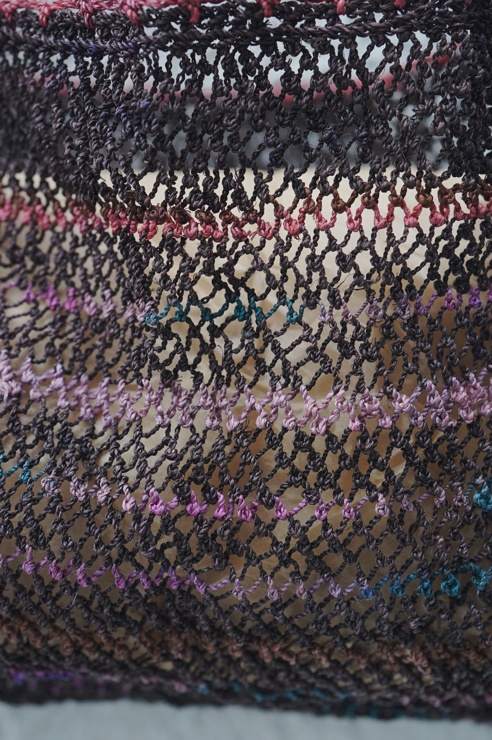 こちらのバッグたちも漁網の技法を用いた編み地で