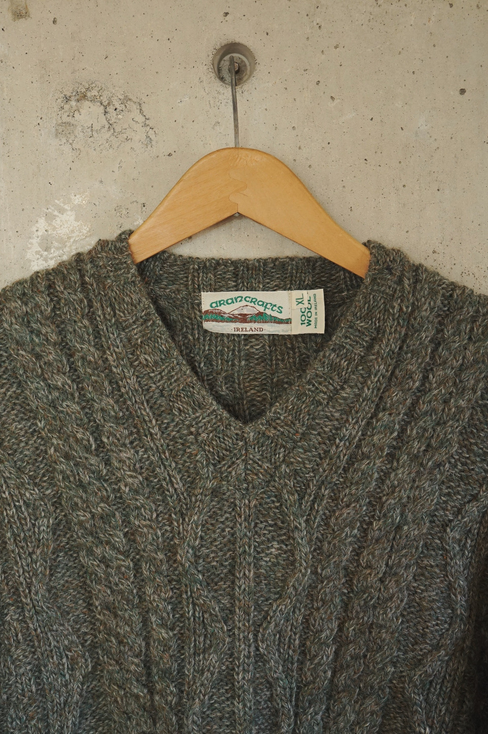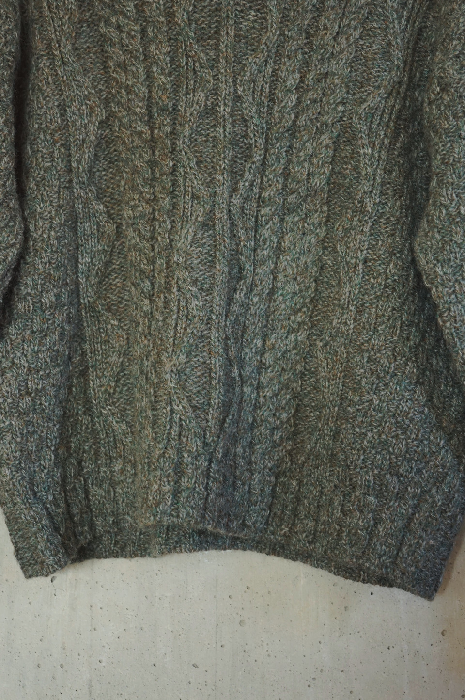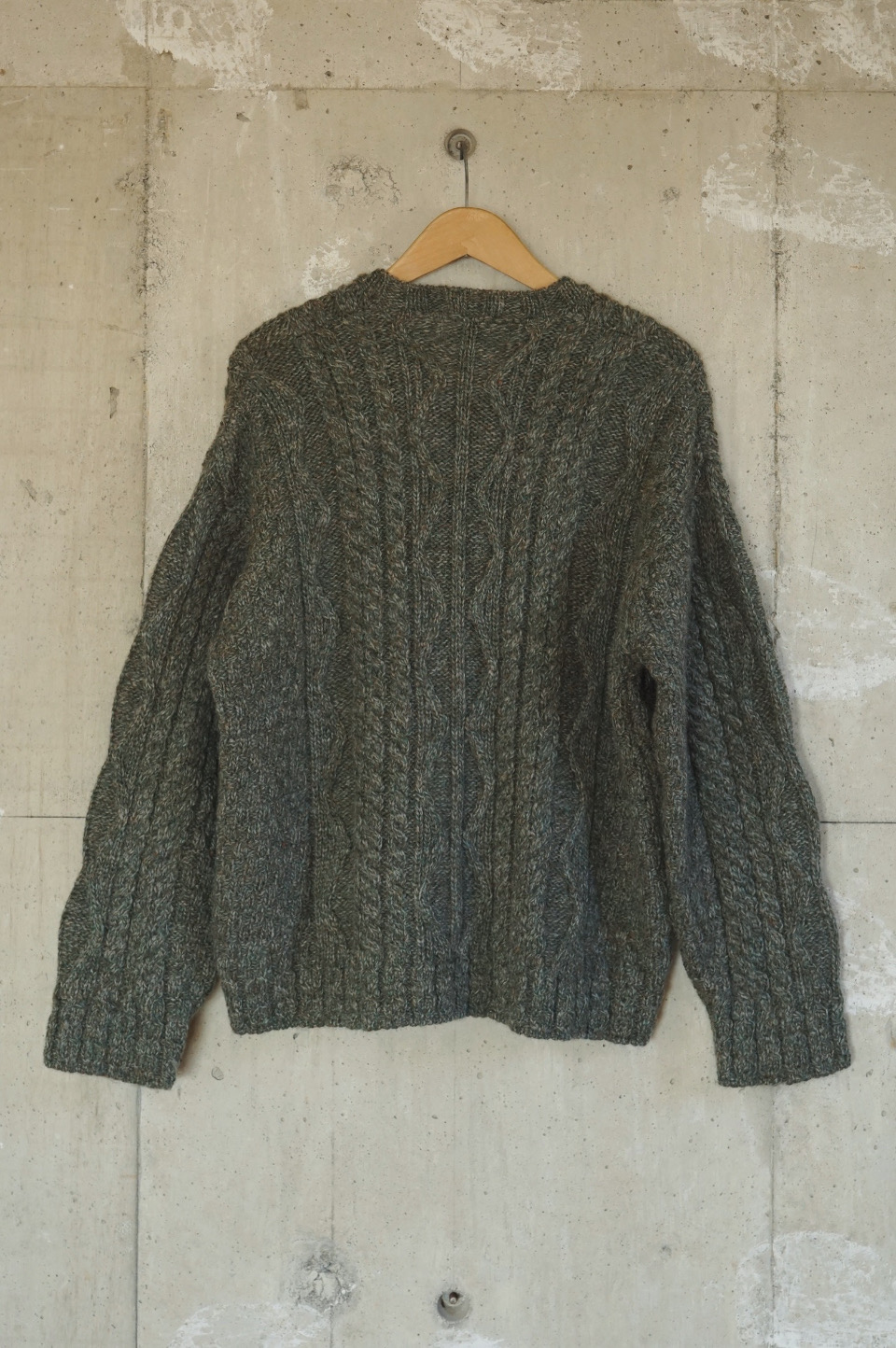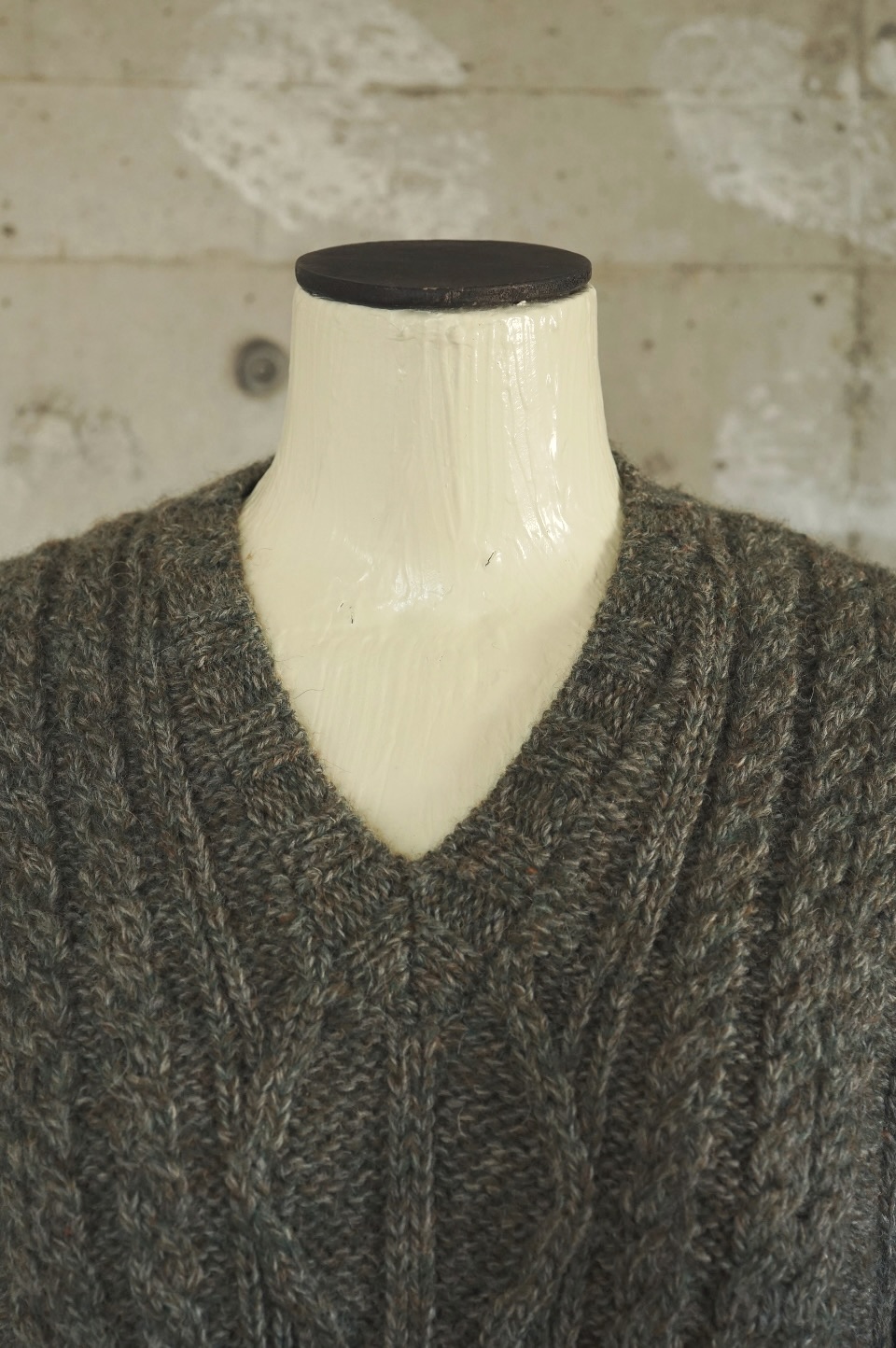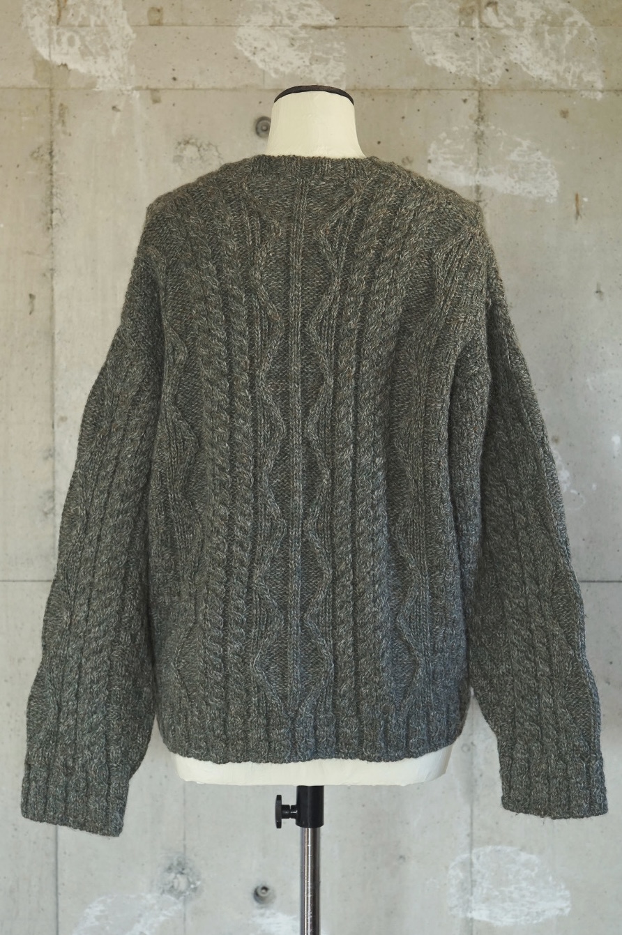 V-Neck Aran Knit/Deep Green tone