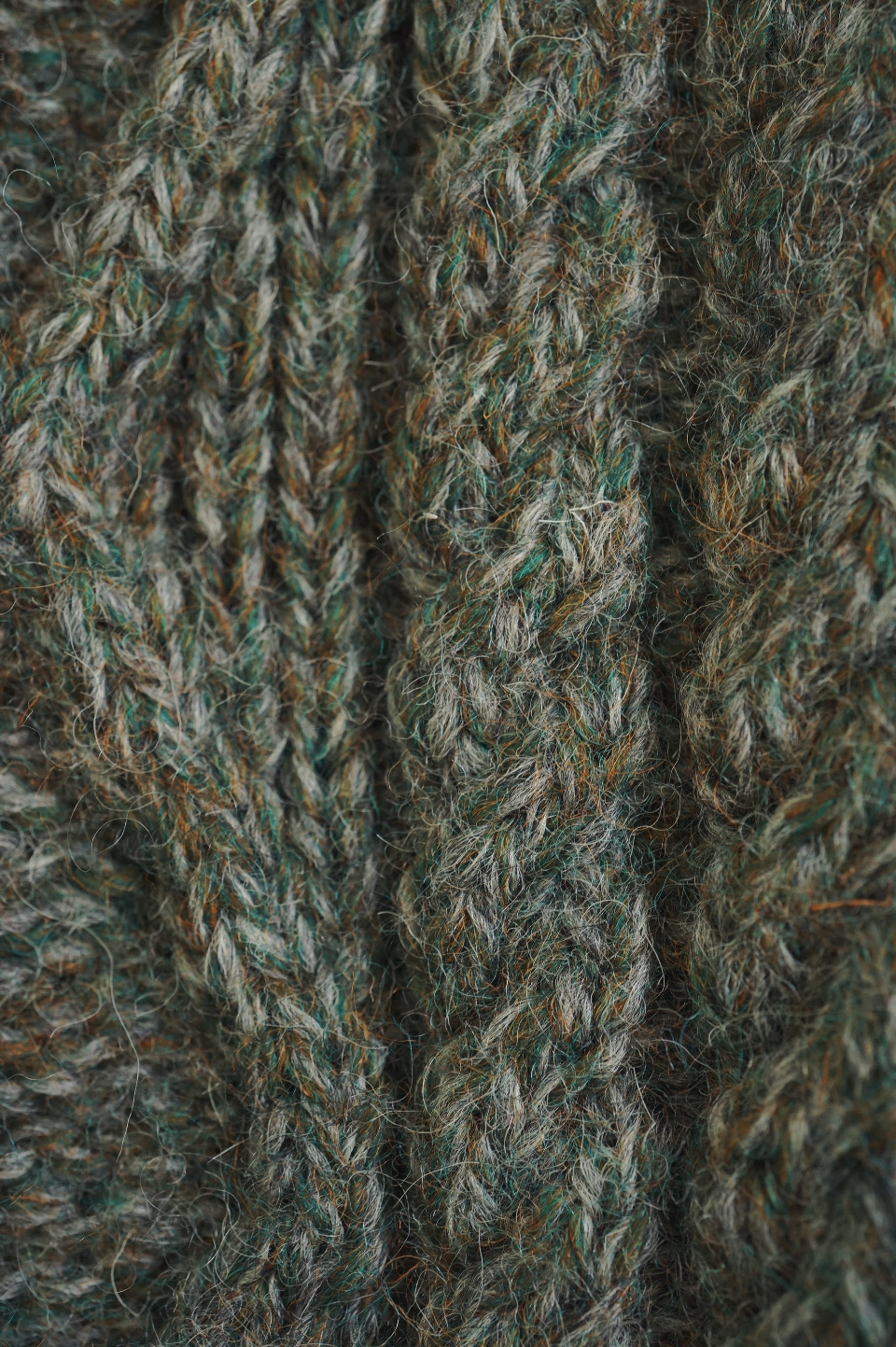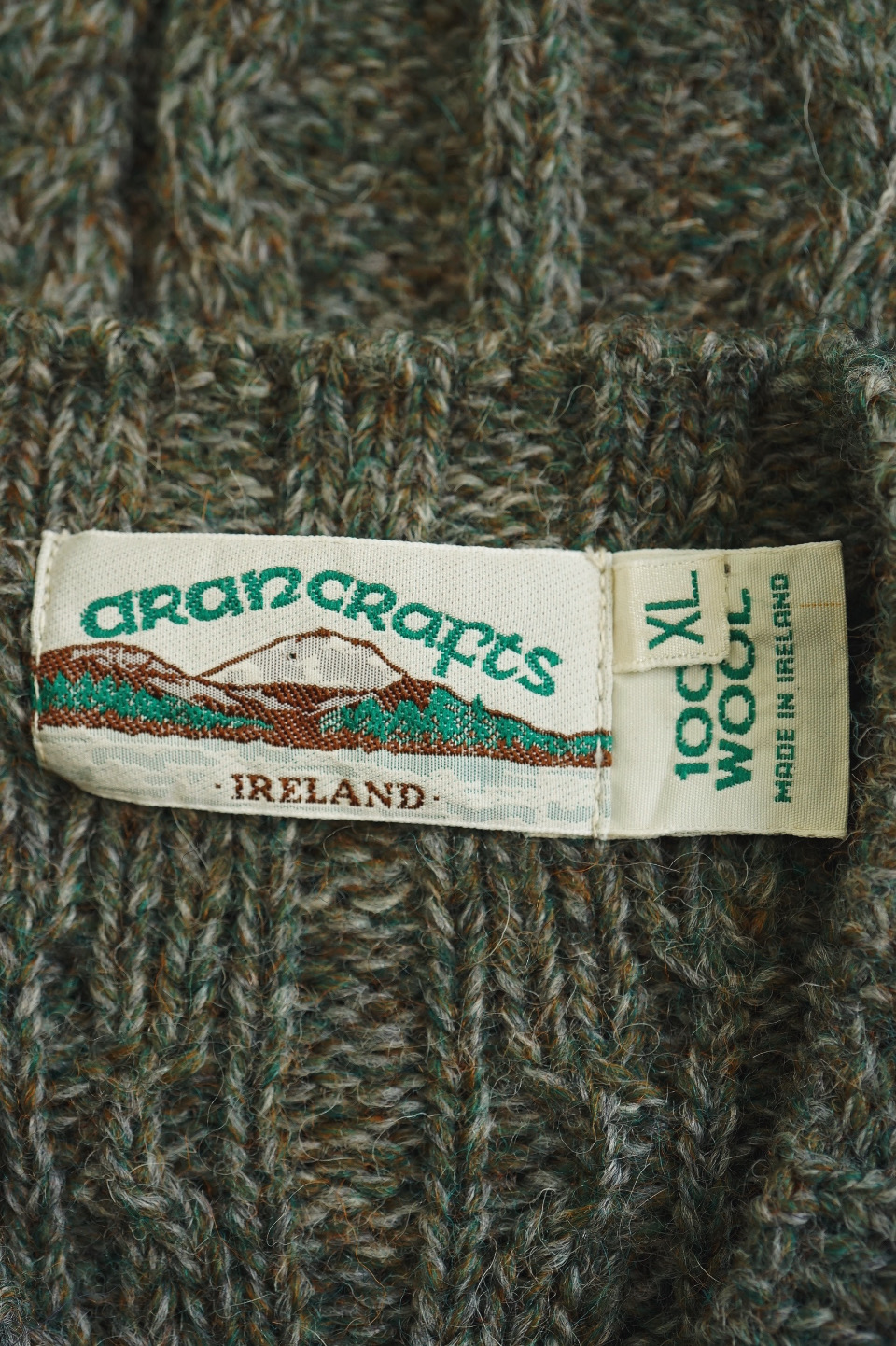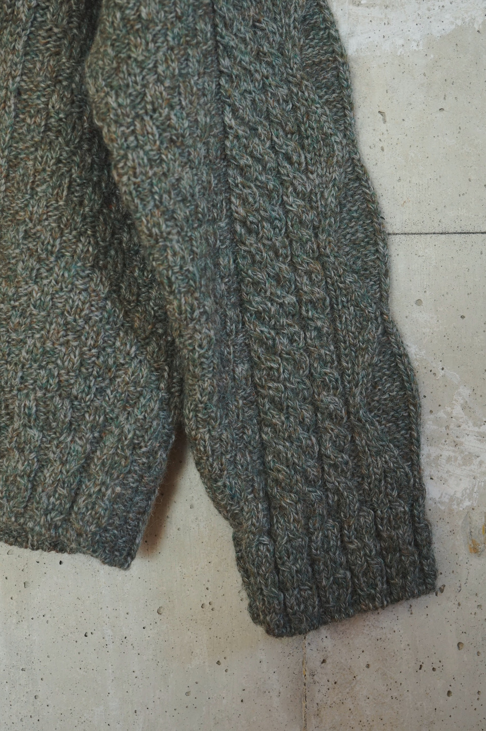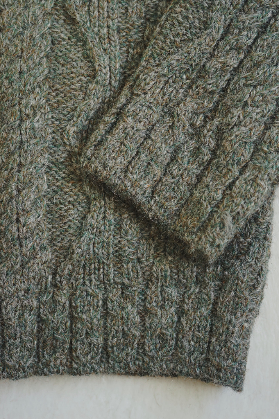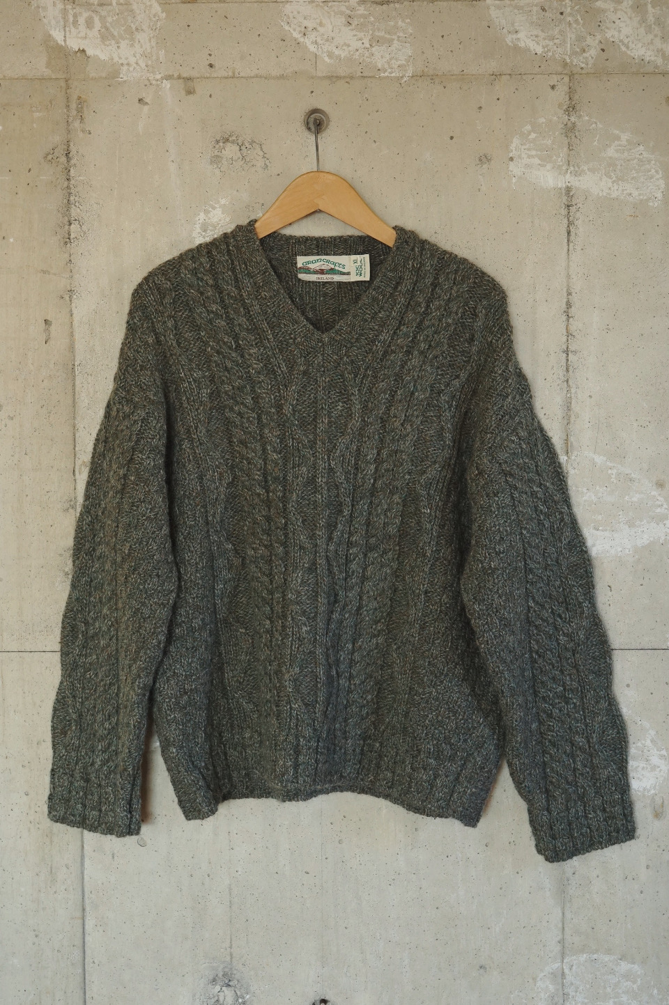 V-Neck Aran Knit/Deep Green tone