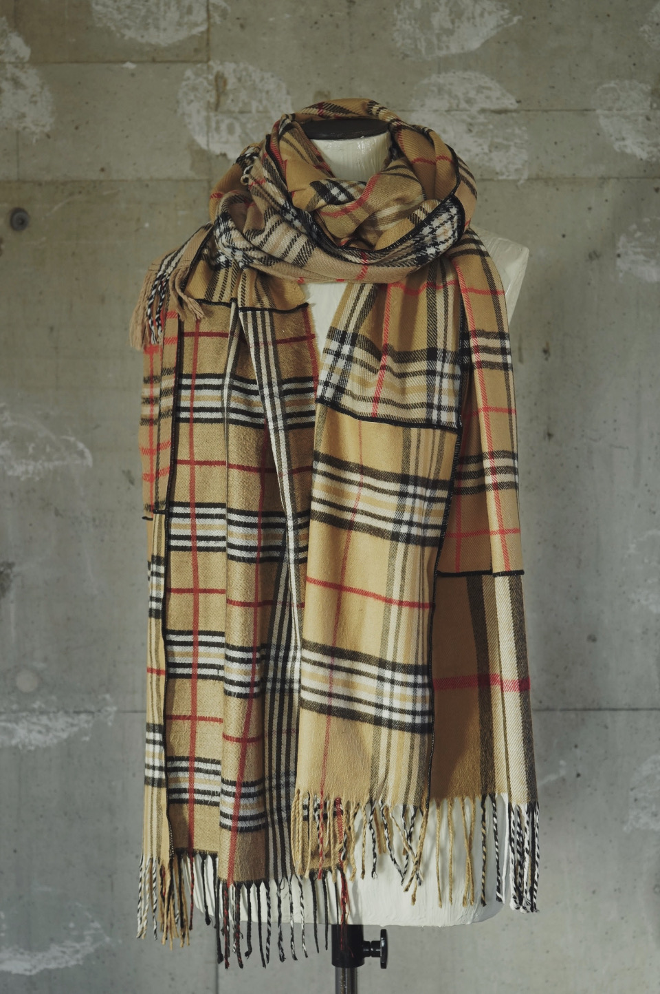 DEPT CRAZY CHECK LONG SCARF / 504 Beige tone