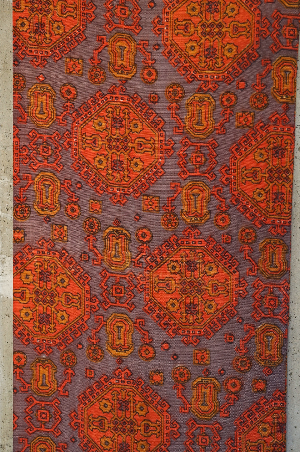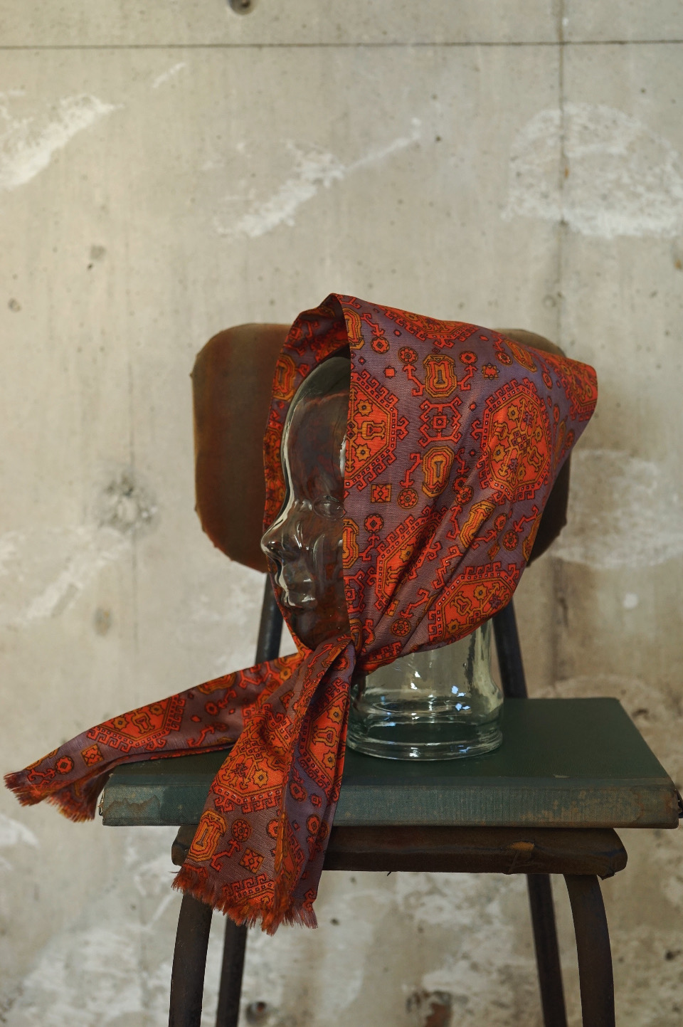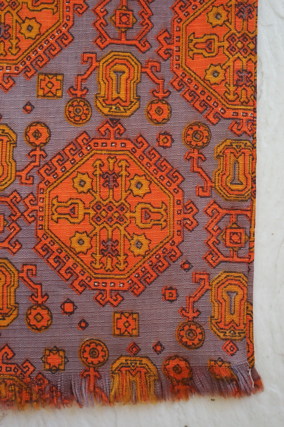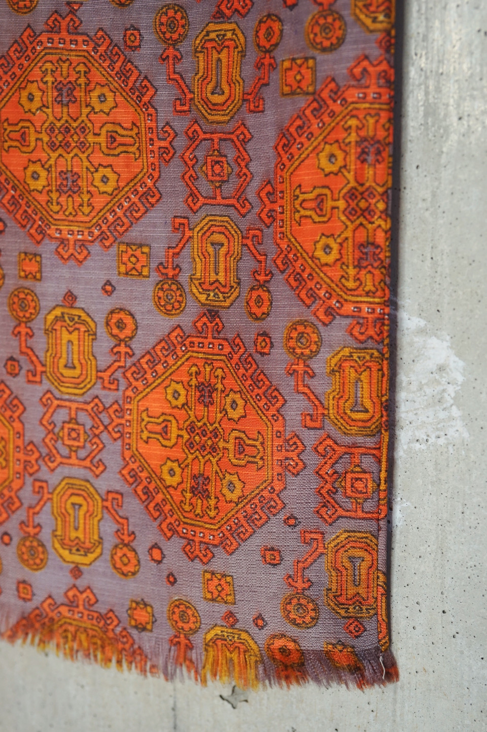 Geometric Pattern Narrow Scarf - Orange×Grey