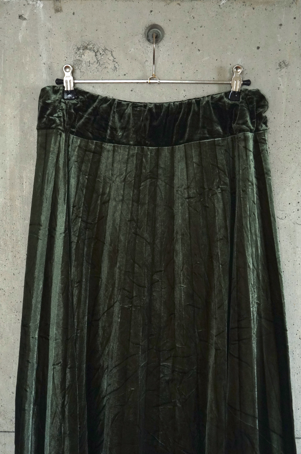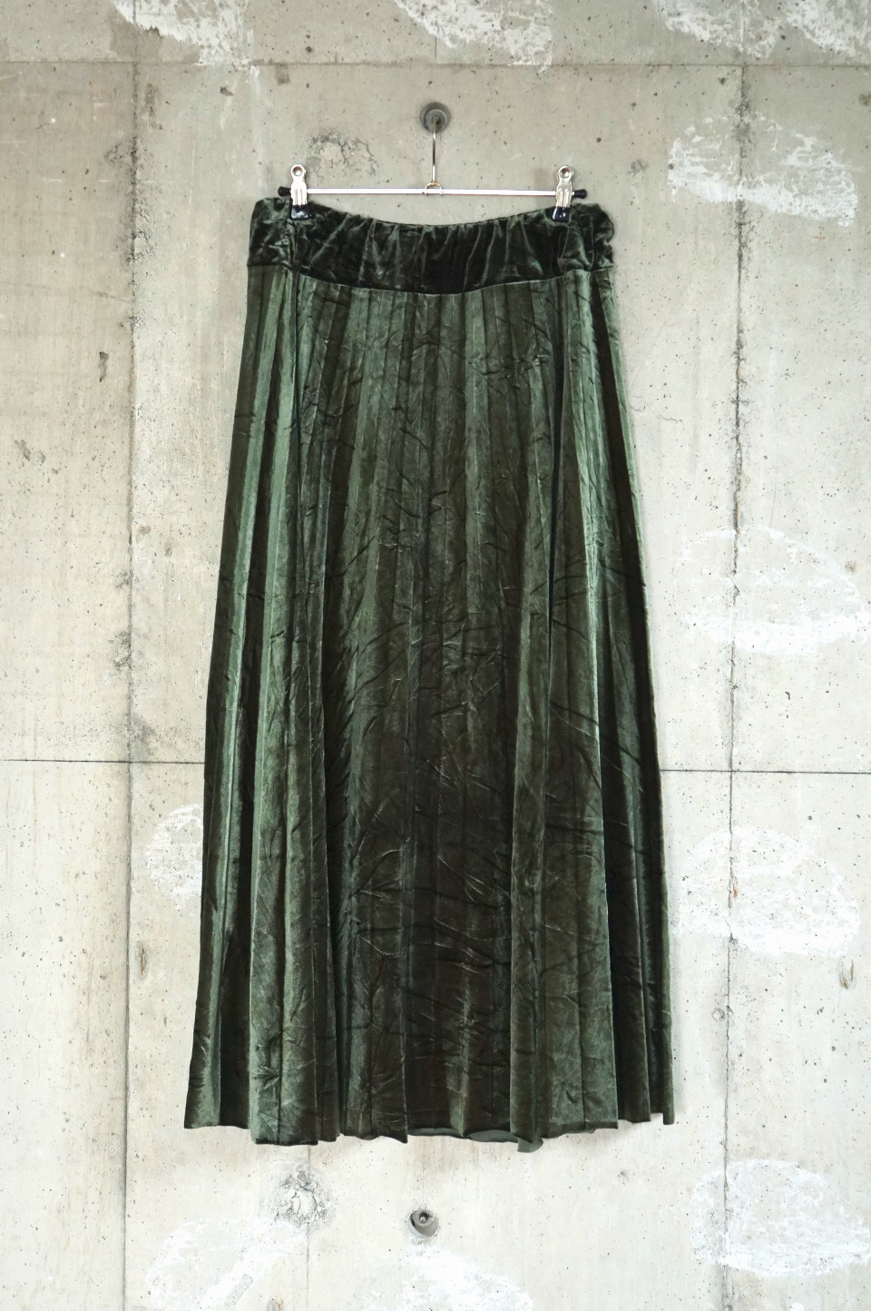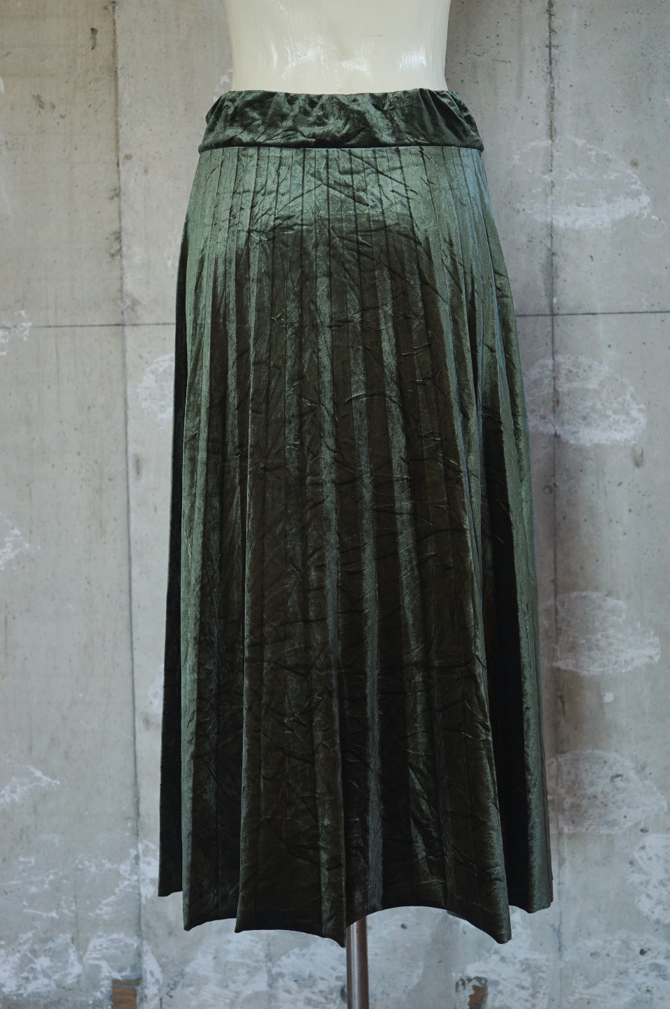 Pleated Velour Skirt/Ash Green
