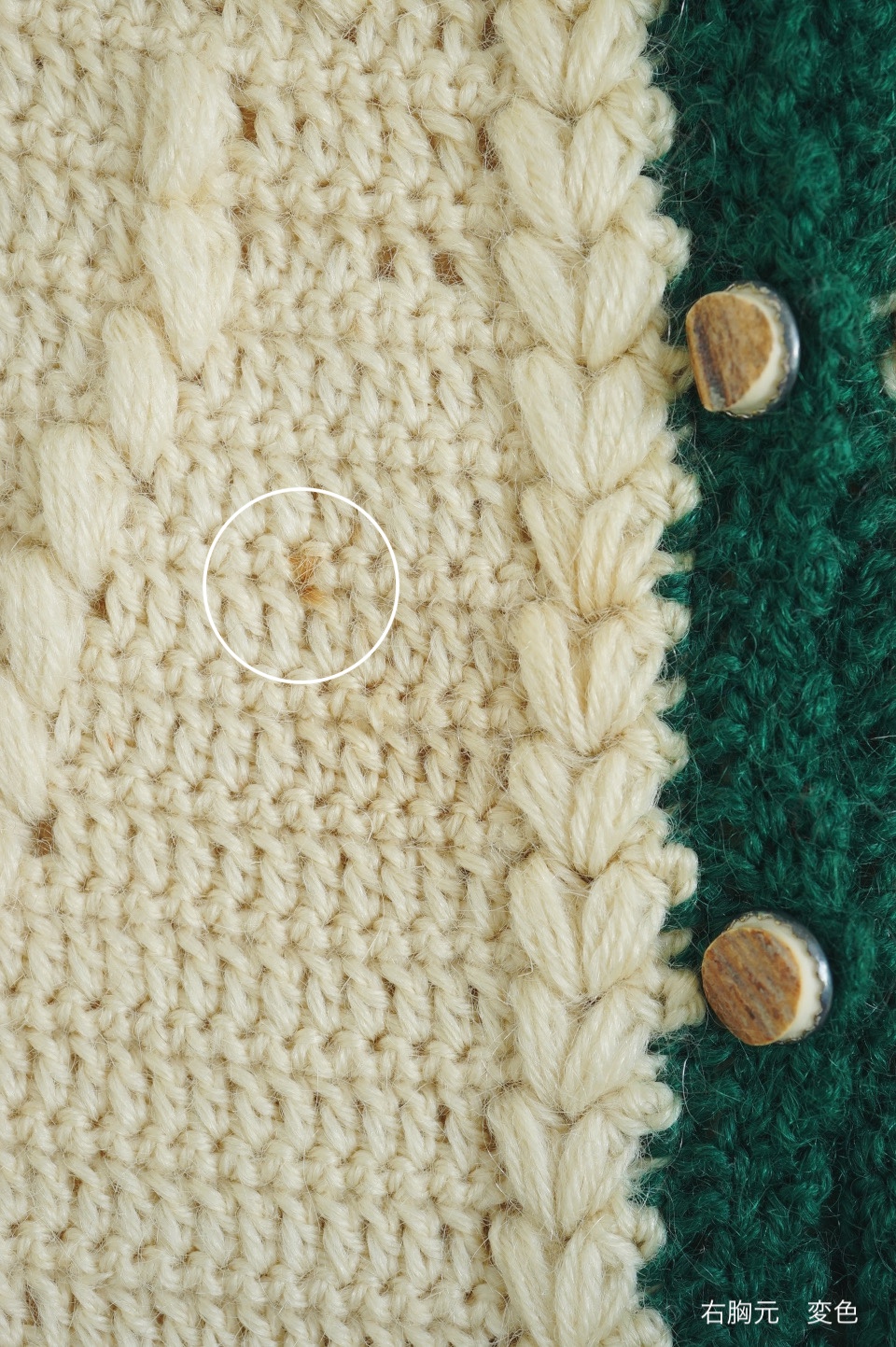 右前身頃襟元、胸元 糸変色