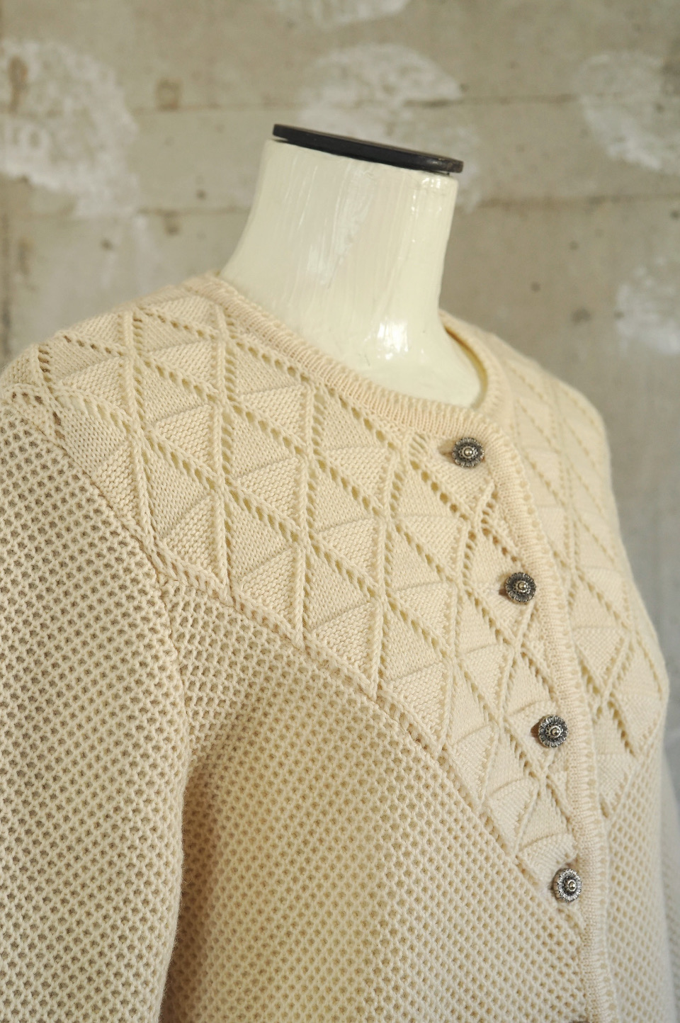 Quality 100% Wool Condition Attention moodの商品は全てプロフェッショナルによるクリーニング、プレス、縫製を施しておりますが、中古衣料という特性上、経年による変化・キズ等はデザインのひとつと捉えております。 古着をさらに次の世代に繋げてゆくため、可能な限り美しく仕立ててお届けしております。 何卒ご理解の上、お楽しみ頂けますようお願い申し上げます。