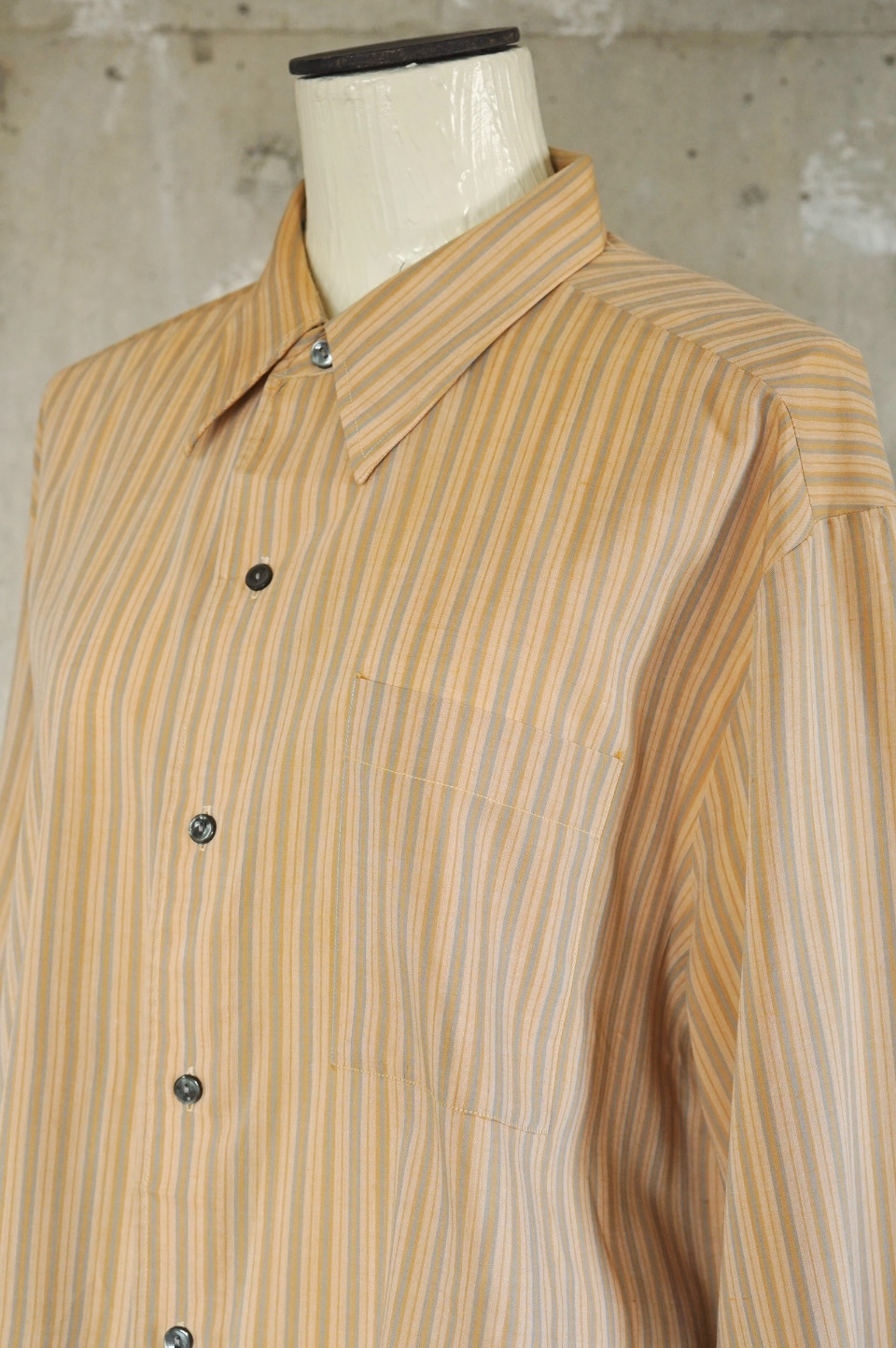 moodの商品は全てプロフェッショナルによるクリーニング、プレス、縫製を施しておりますが、中古衣料という特性上、経年による変化・キズ等はデザインのひとつと捉えております。