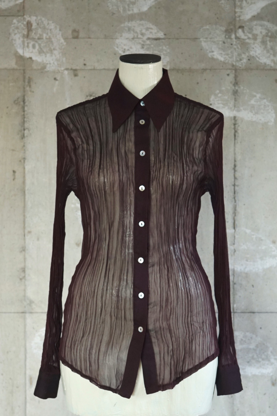 シアー素材のプリーツが軽やかな印象のブラウス。