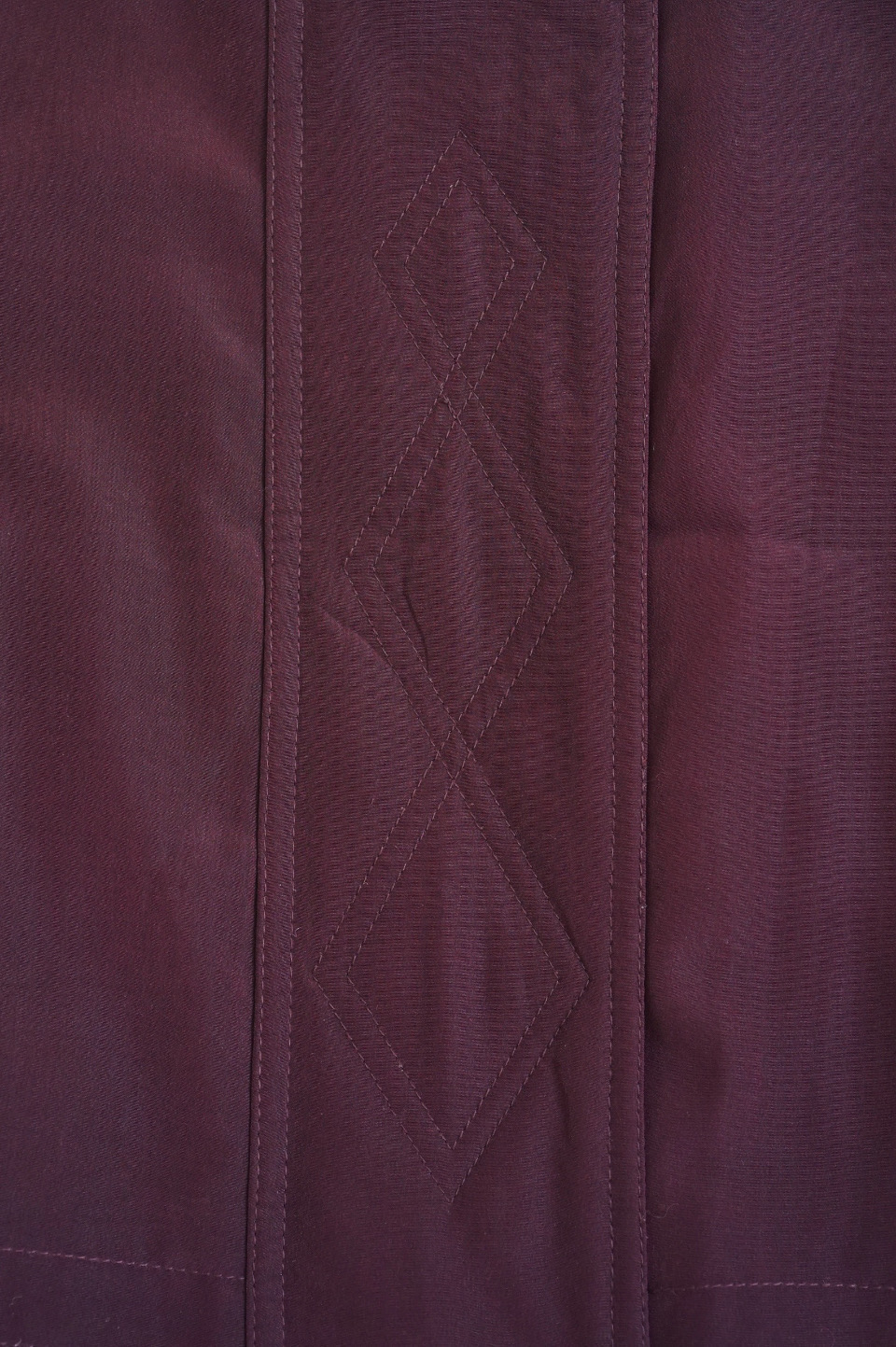二重構造の襟や前立て、袖口に施されたステッチワークなど、