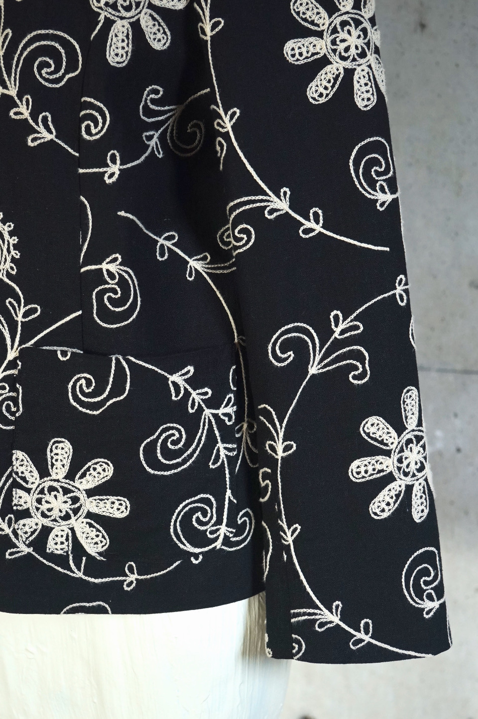 全面にチェーンステッチ刺繍が施されたジャケットは、