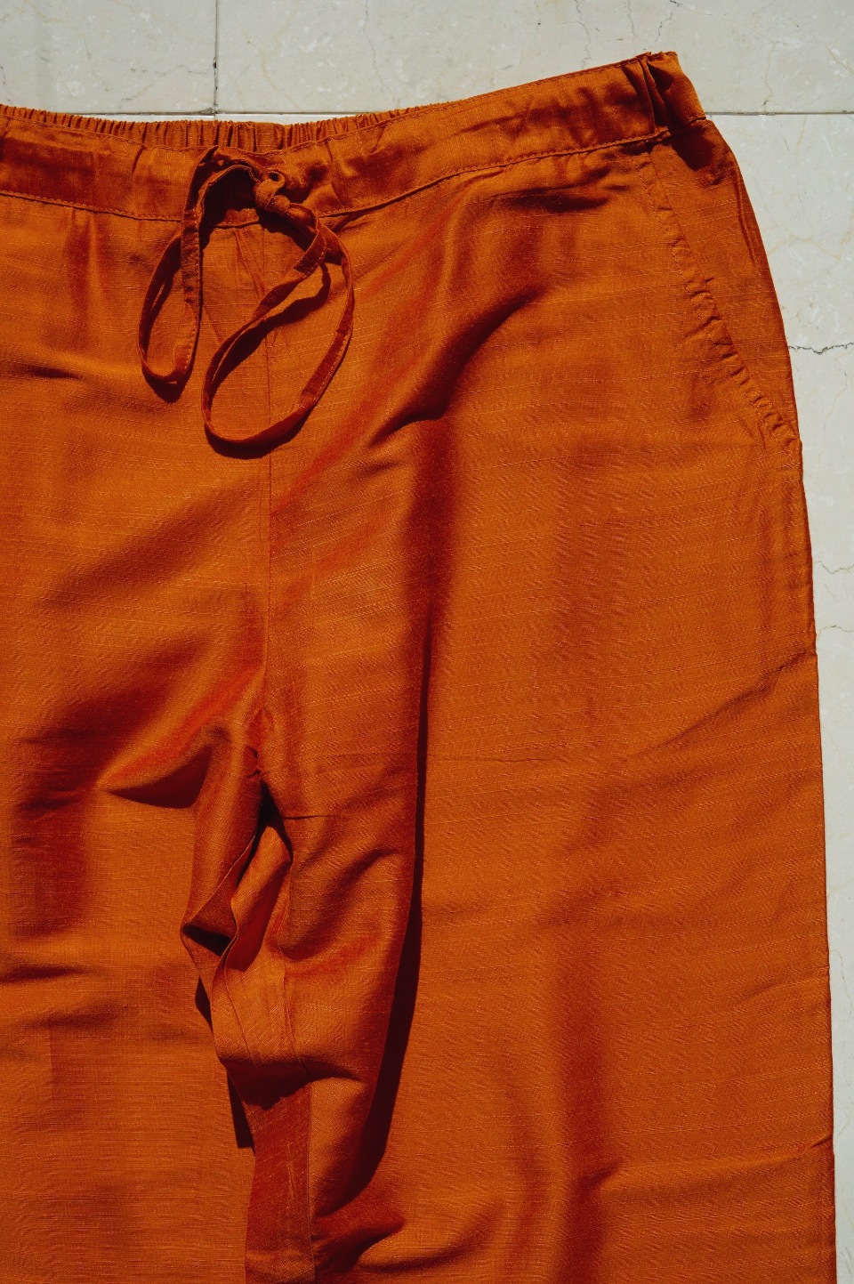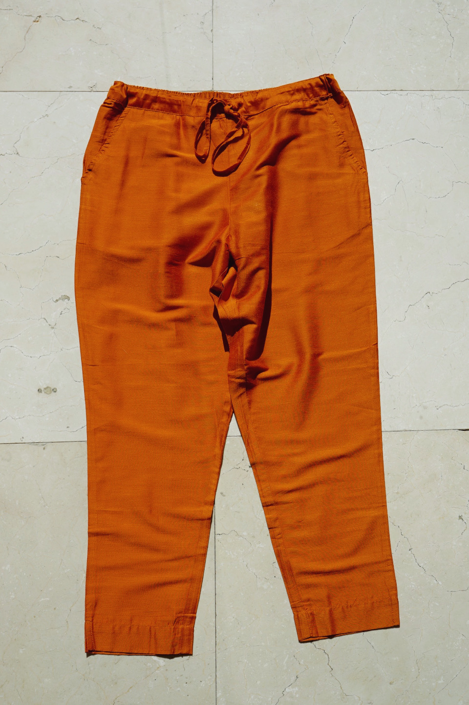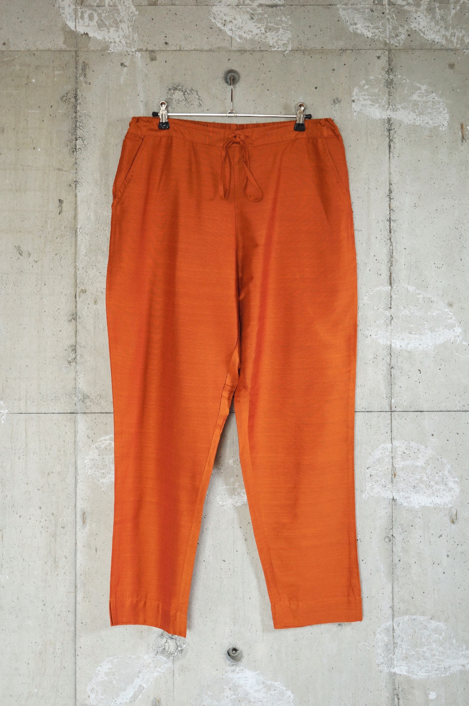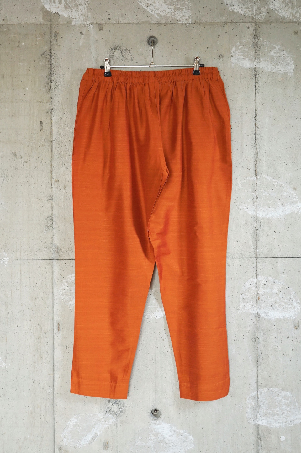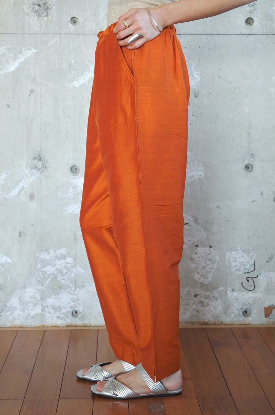 スラブ糸による表情豊かな質感が魅力のシルク素材のパンツ