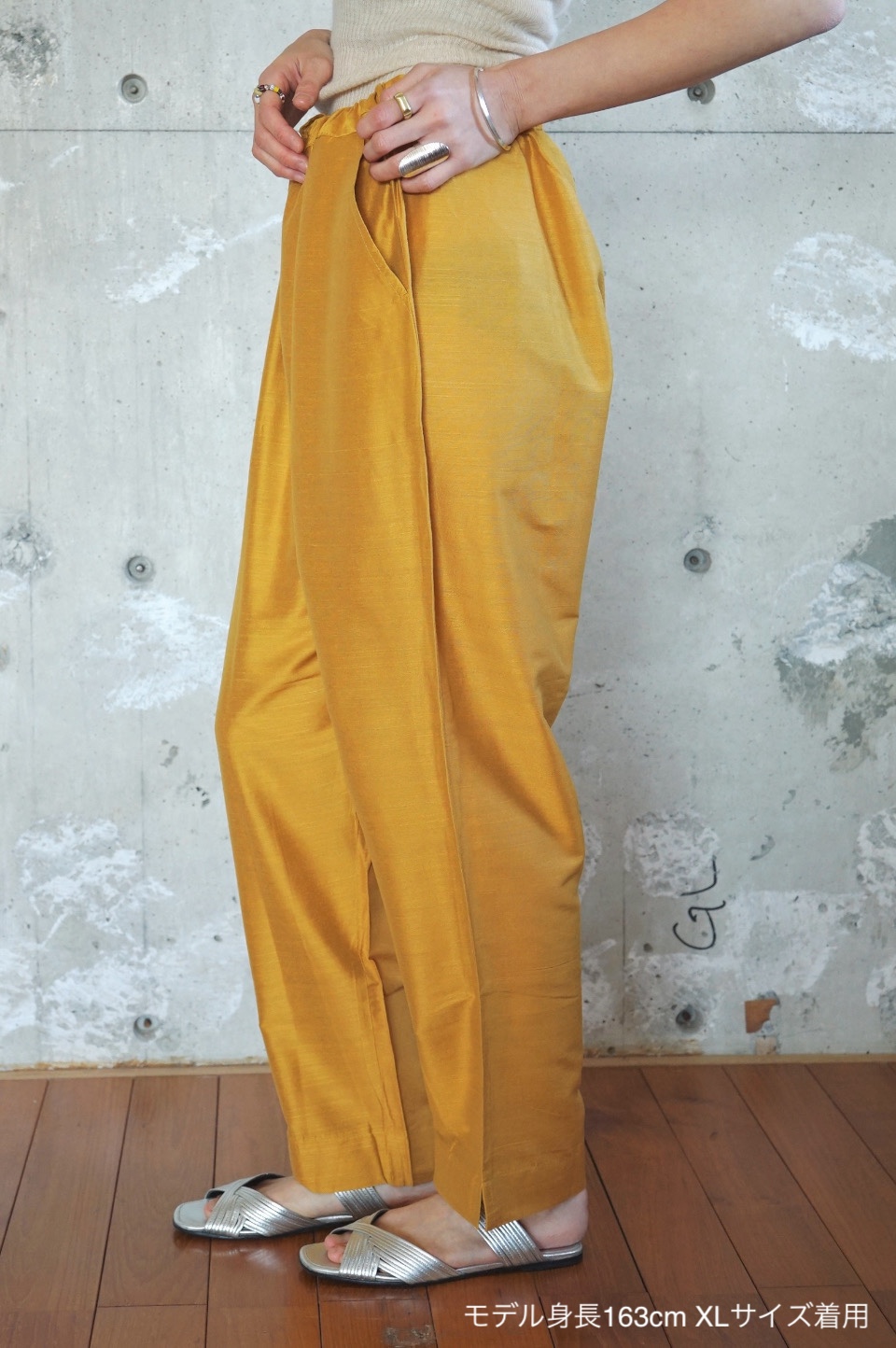 スラブ糸による表情豊かな質感が魅力のシルク素材のパンツ