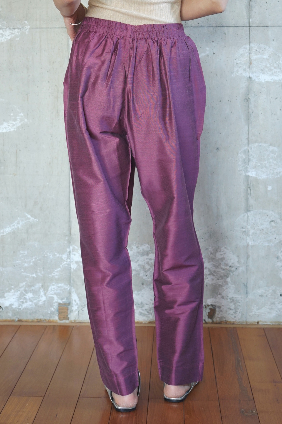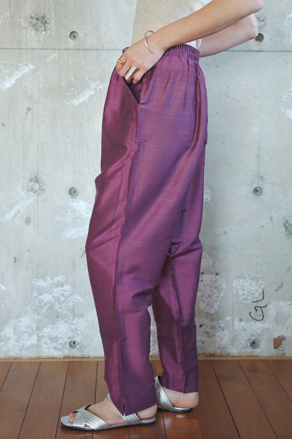 eriが南インドの旅で出会ったシルク素材のパンツが