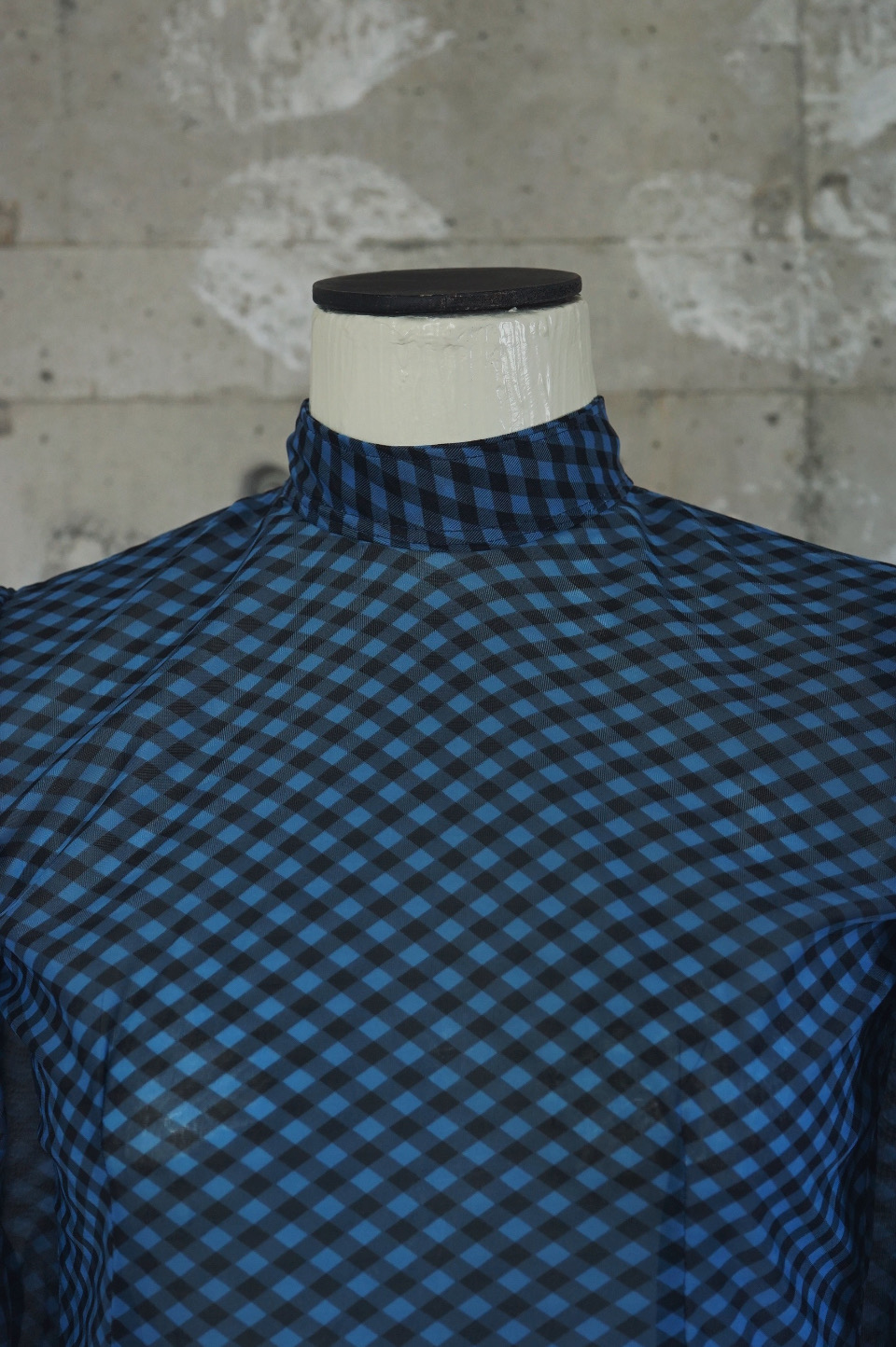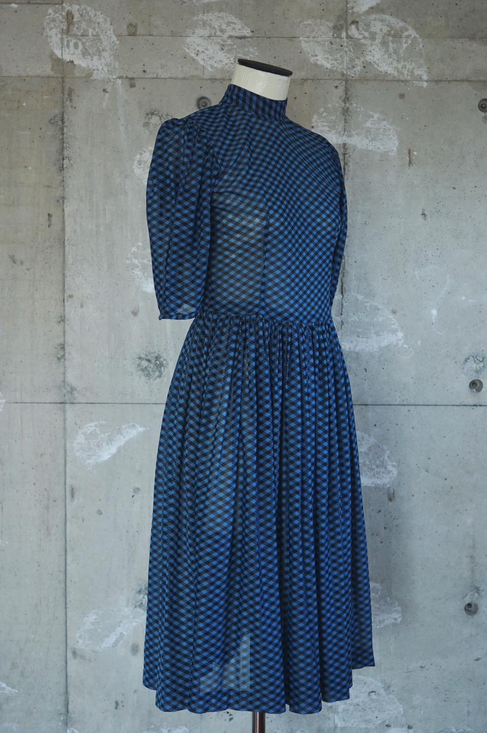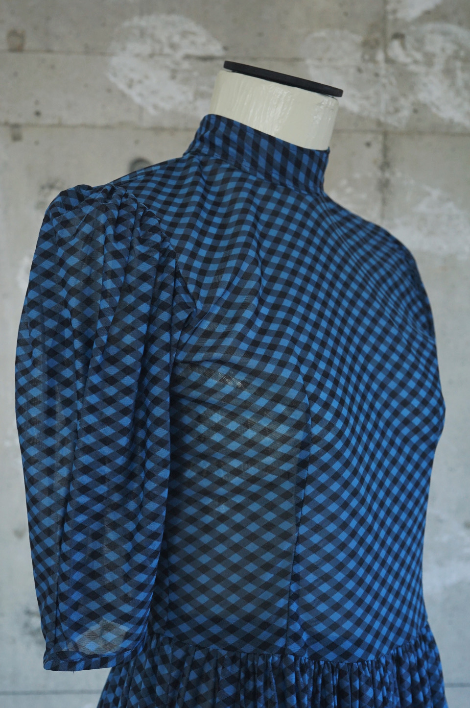Sheer Gingham Check High-Neck Dress