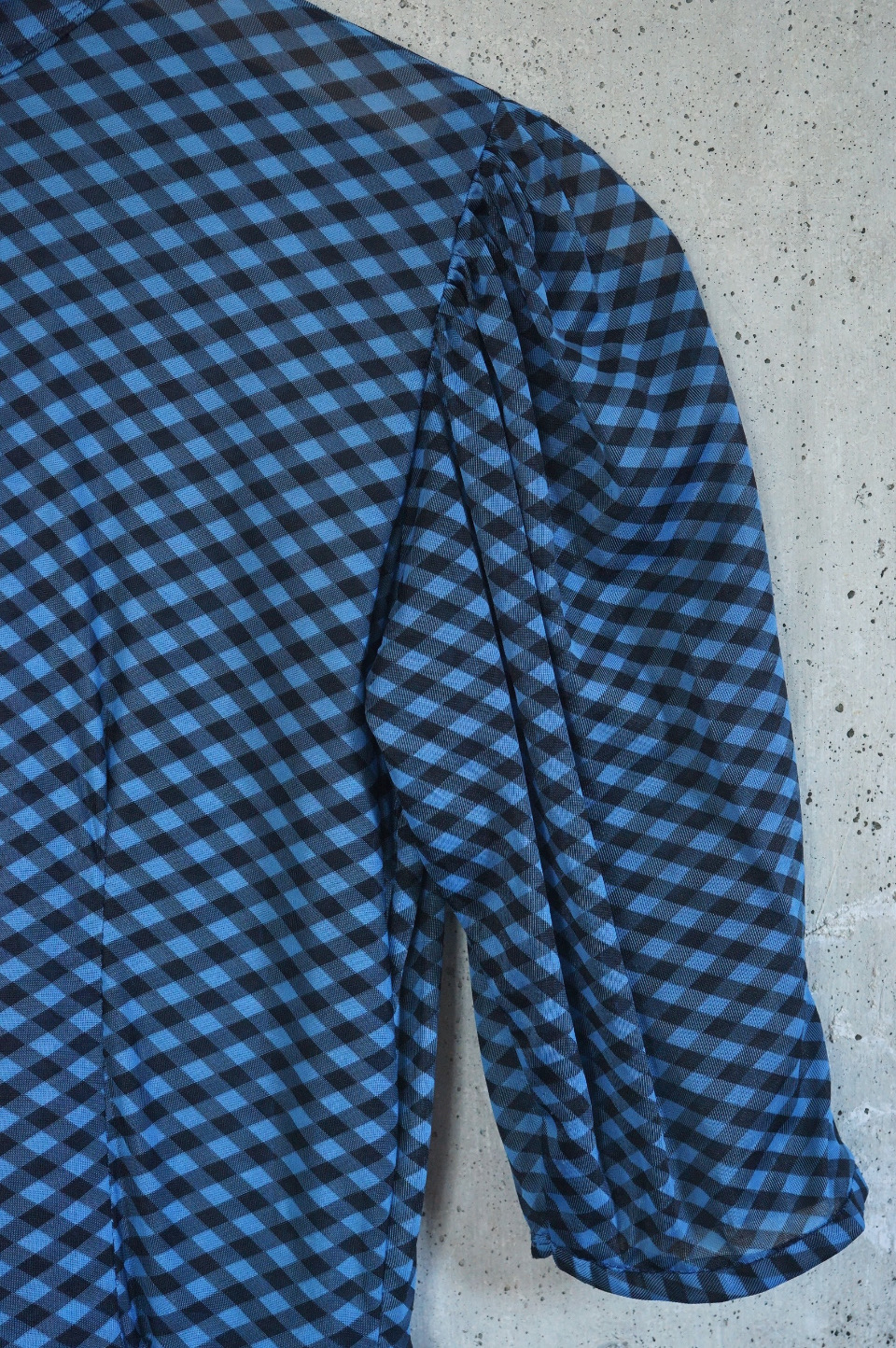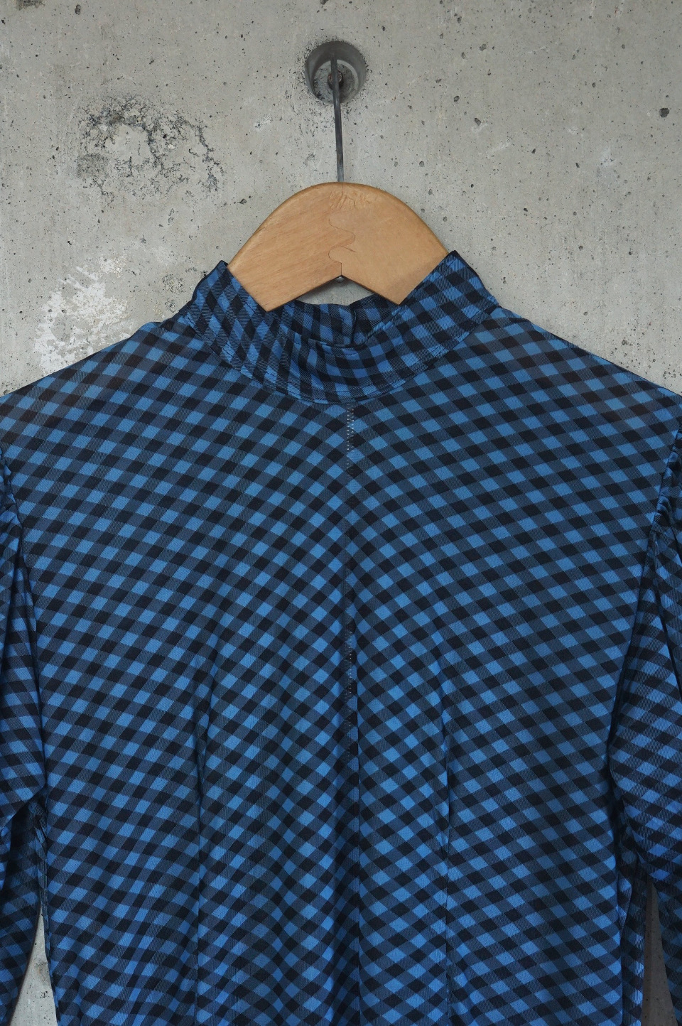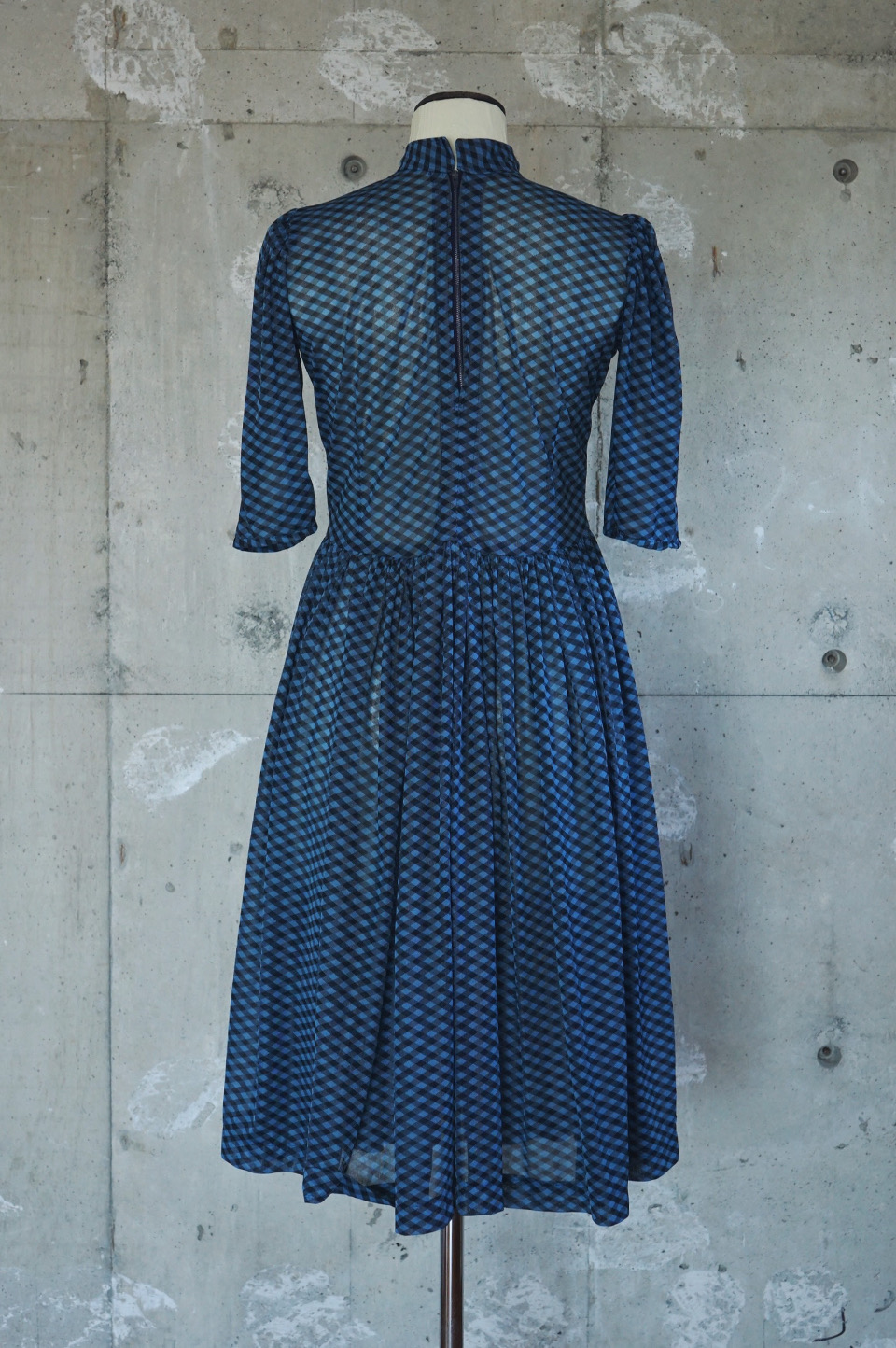 Sheer Gingham Check High-Neck Dress