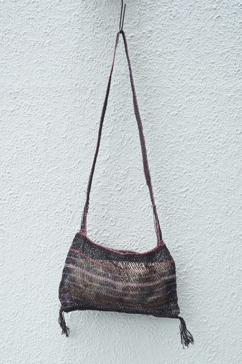 Hand knitting pied shoulder bag-Space dyed stripe/Green tone