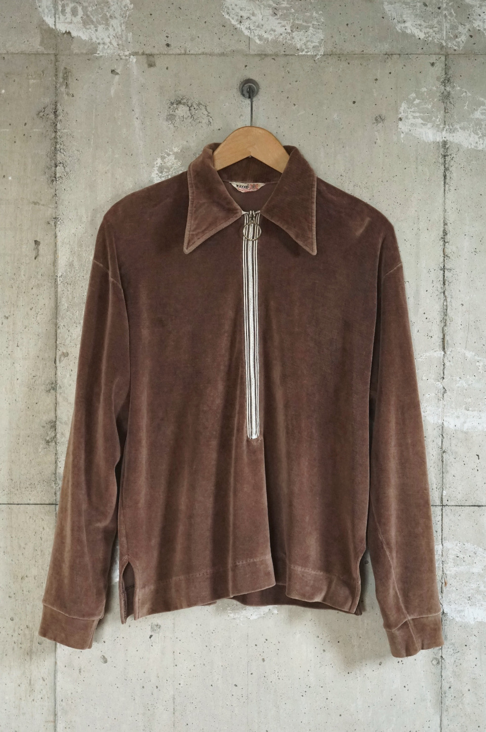 Velour Zip-Neck Top/Mocha