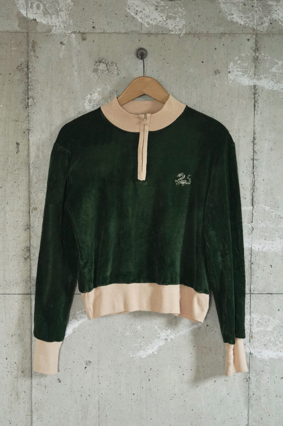 Dragon Embroidered Velour Zip-Neck