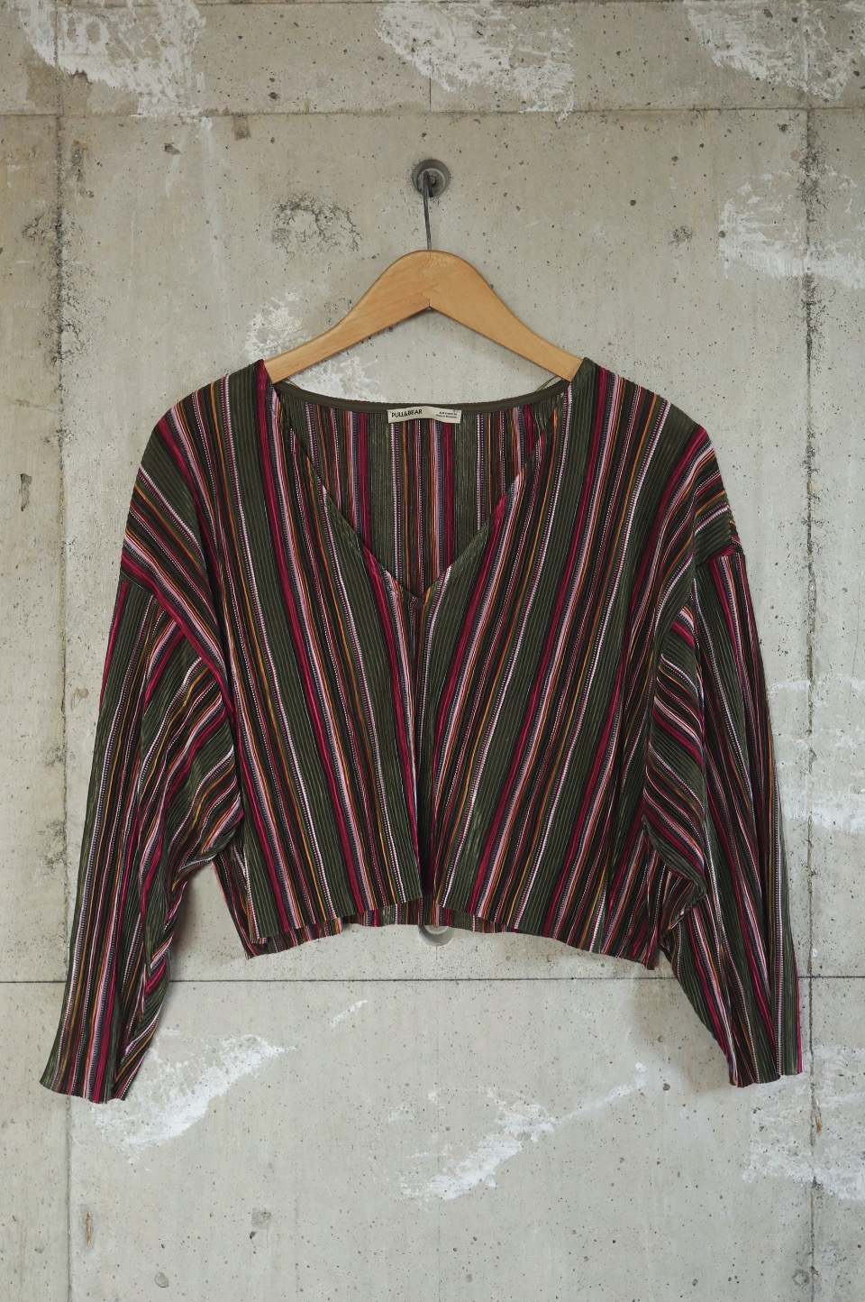 Multi Stripe Pleated V-neck Top