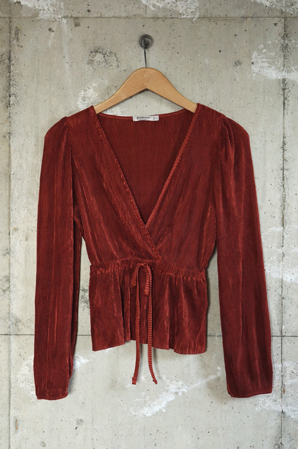 Pleated Sheer Blouse/Burgundy