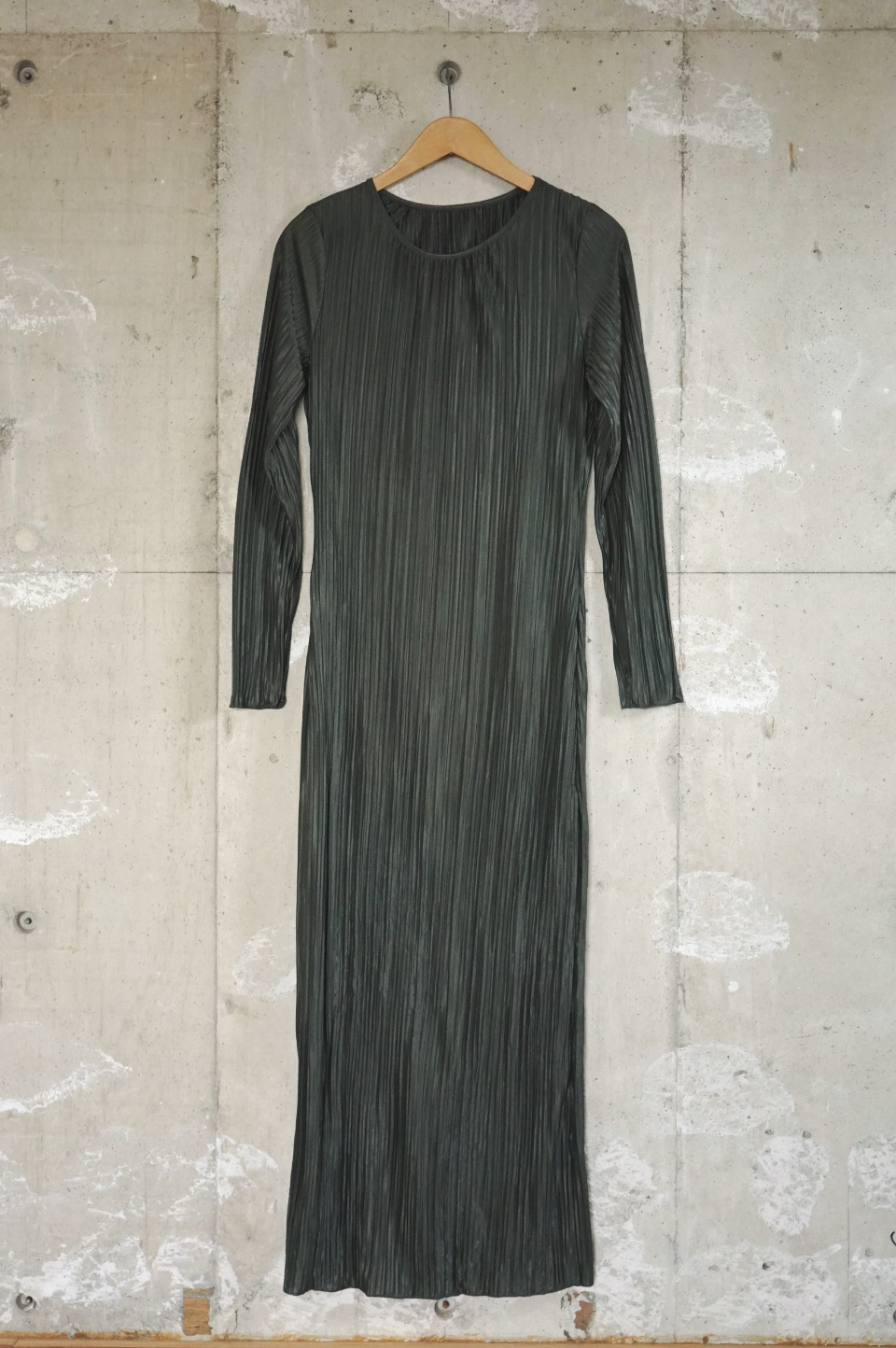 Long-Sleeve Pleated Maxi Dress