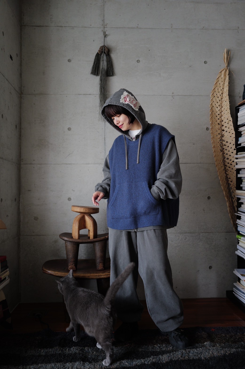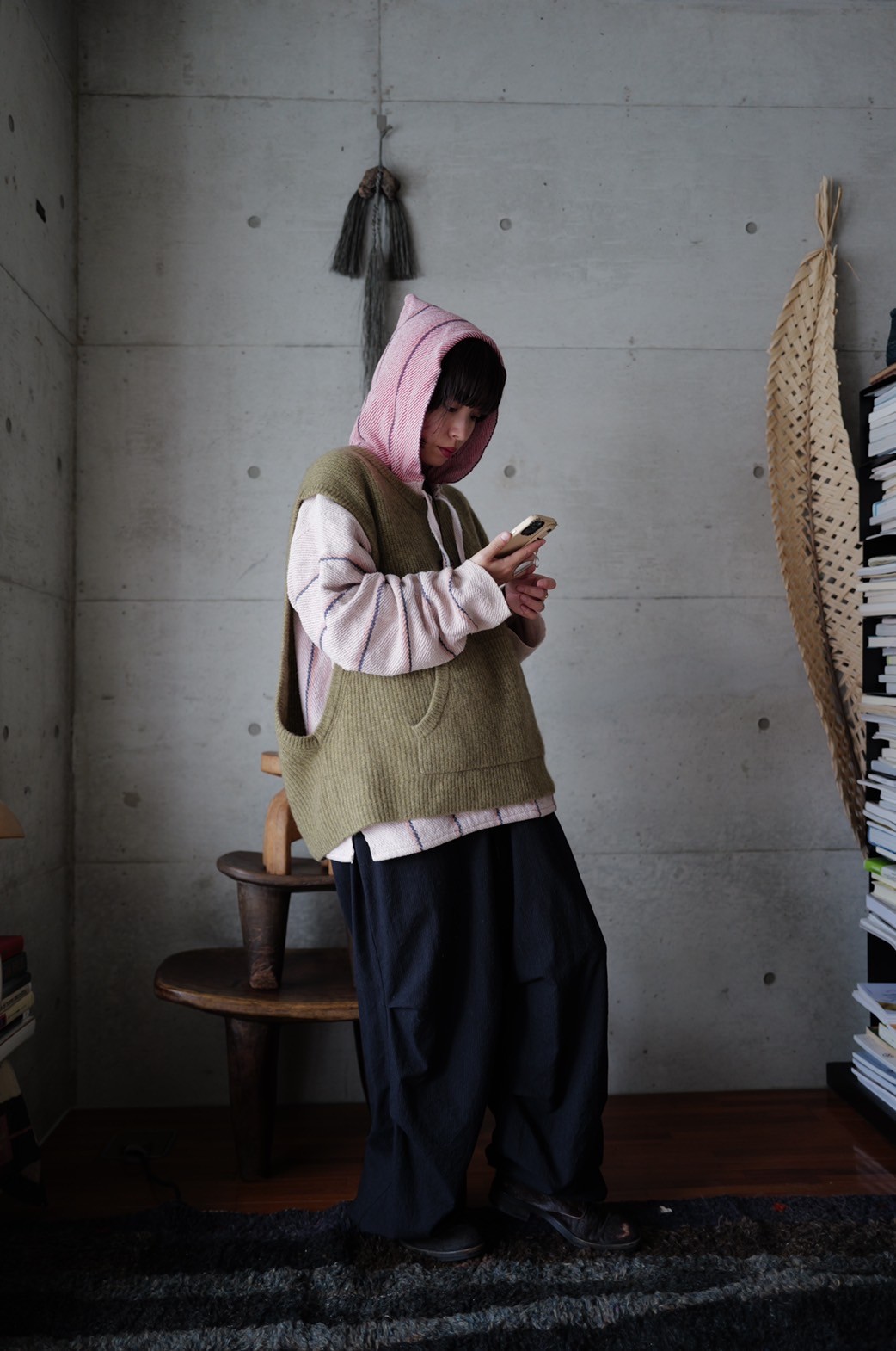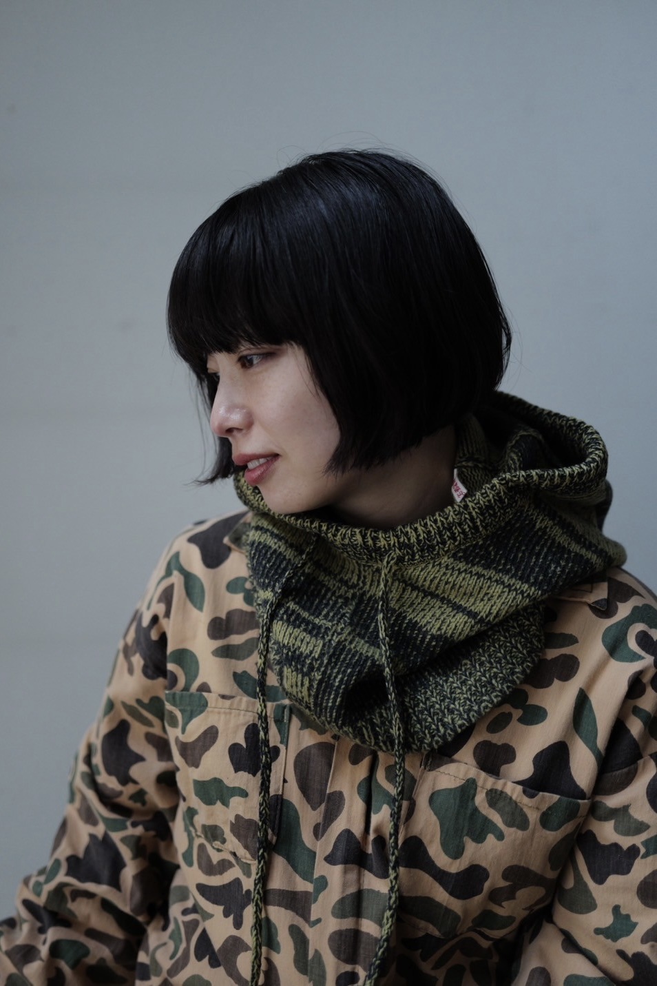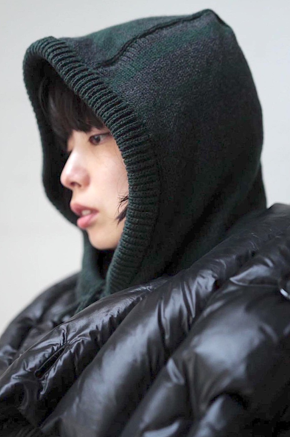 Recycled Cashmere Balaclava/GREEN×CHARCOAL