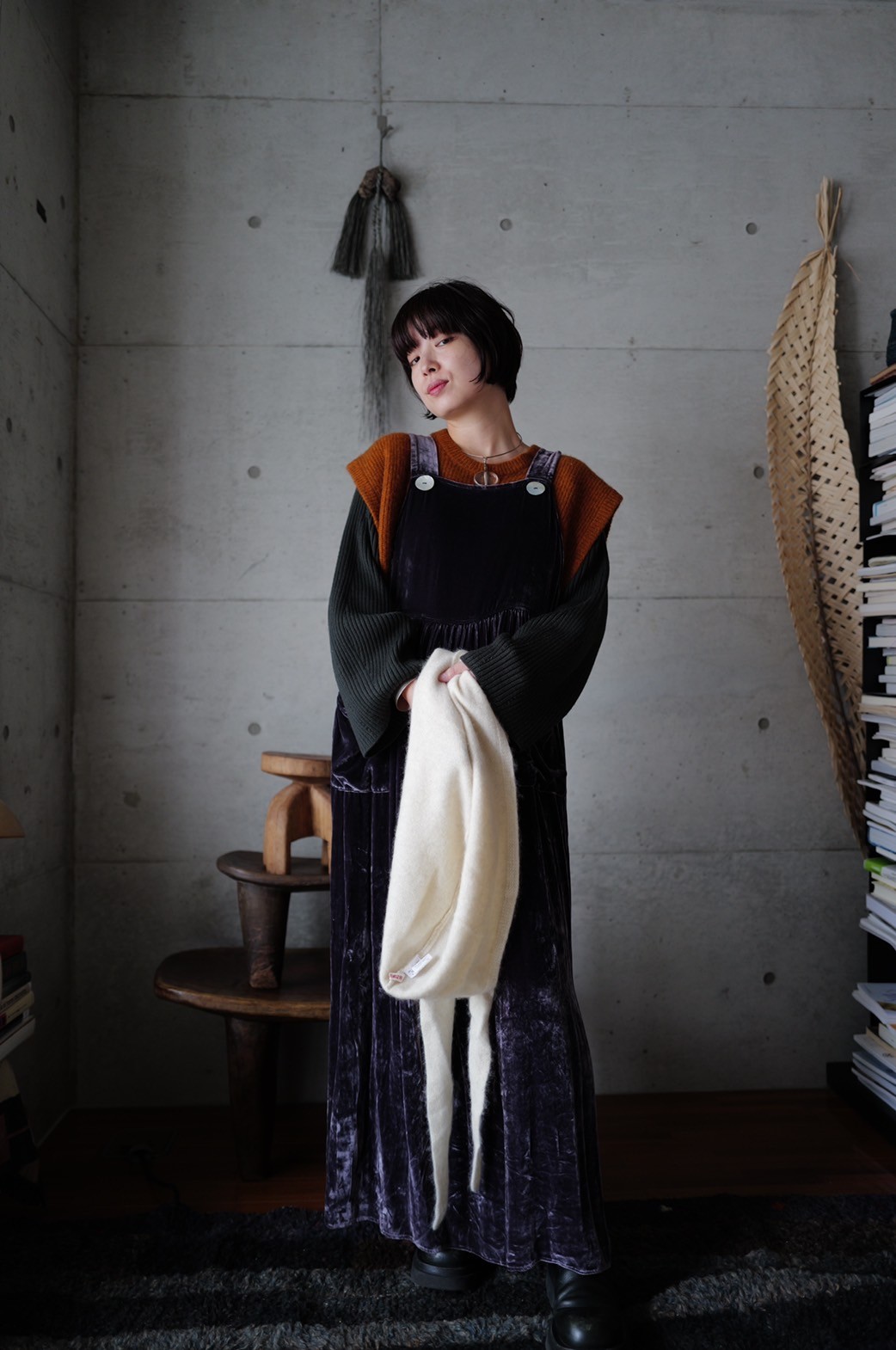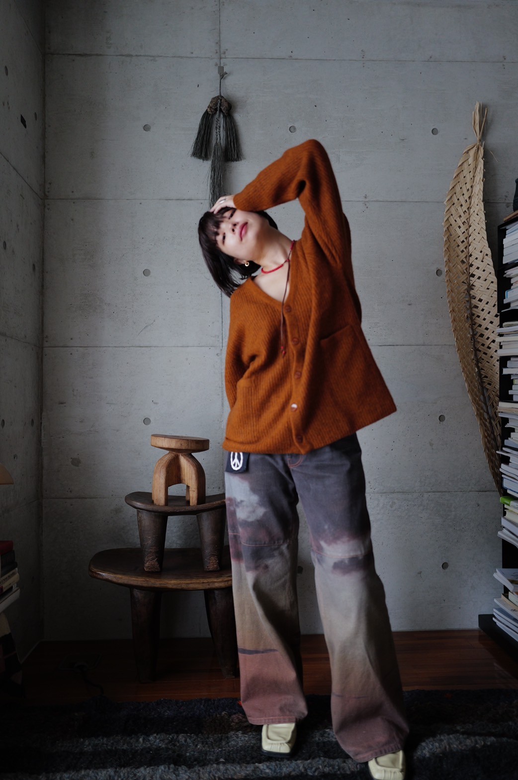Recycled Cashmere Balaclava/ORANGE×CHARCOAL
