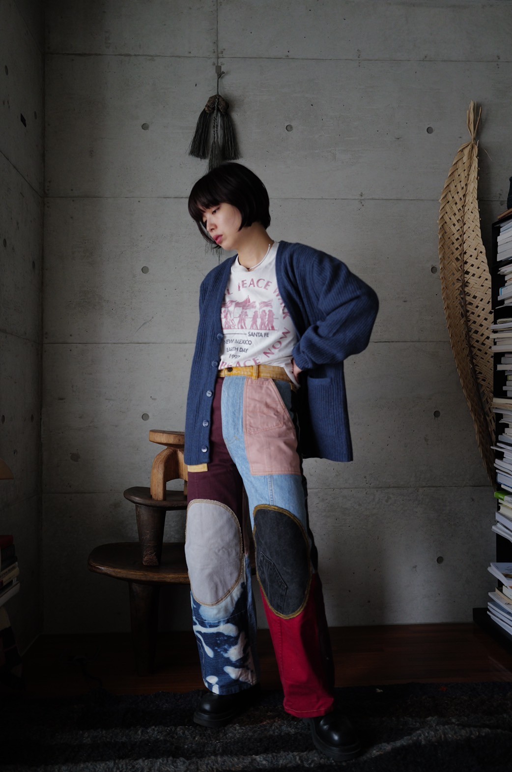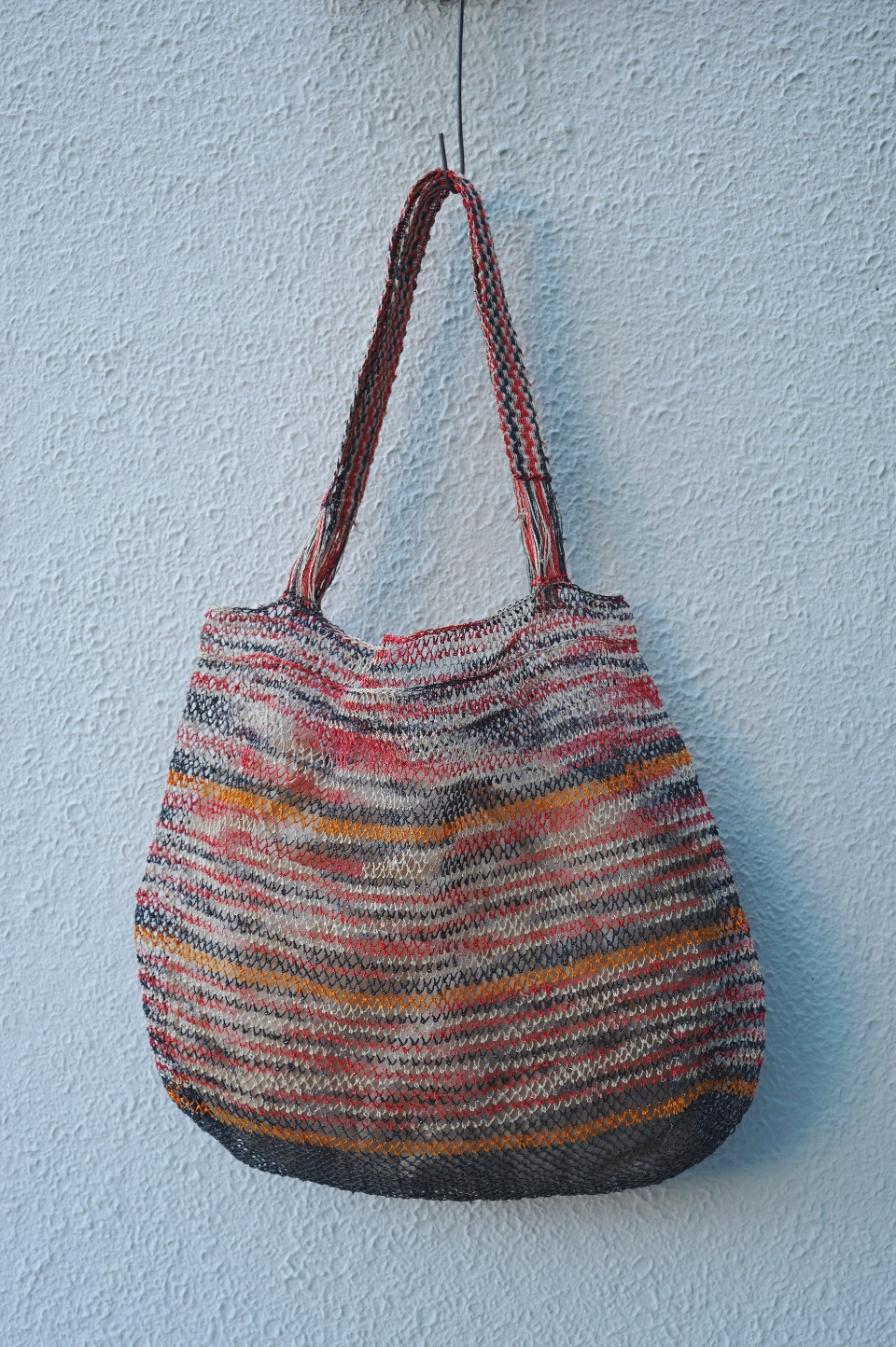 Hand knitting pied tote bag-Space dyed stripe/Multi