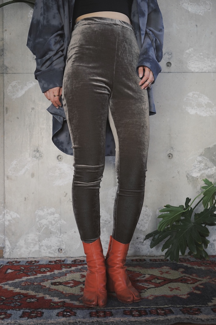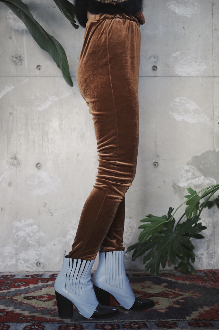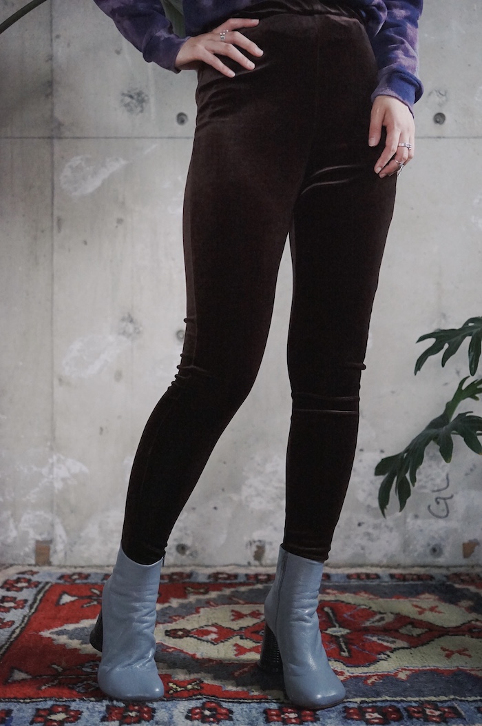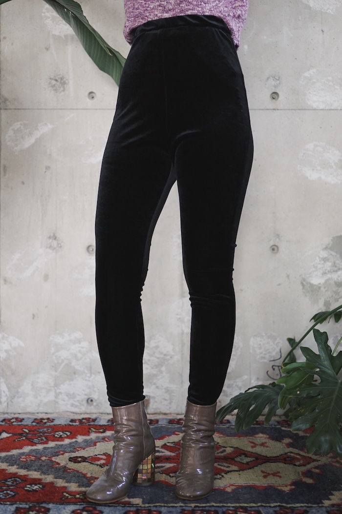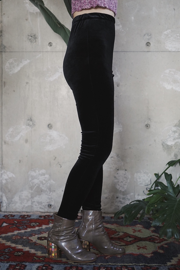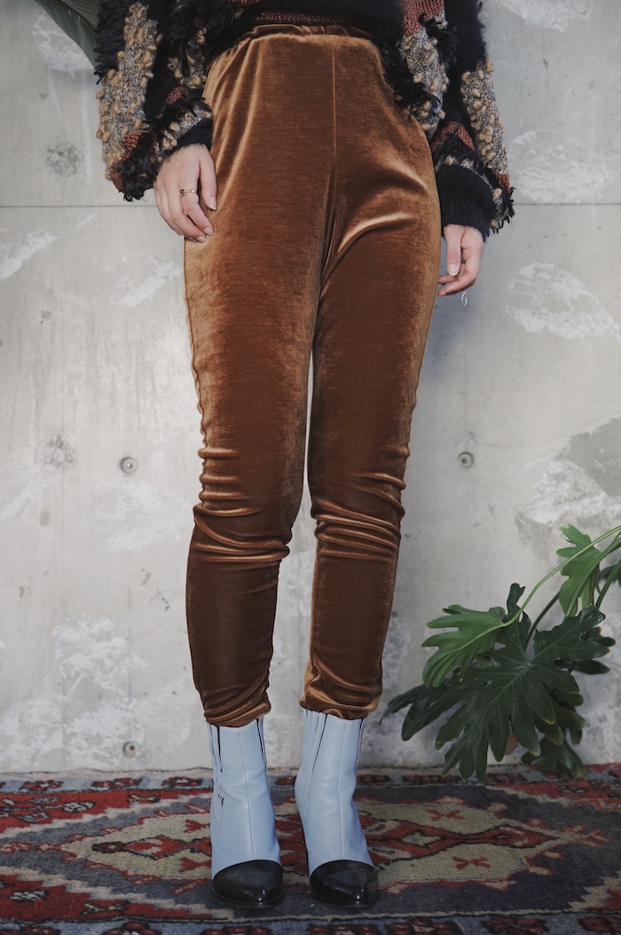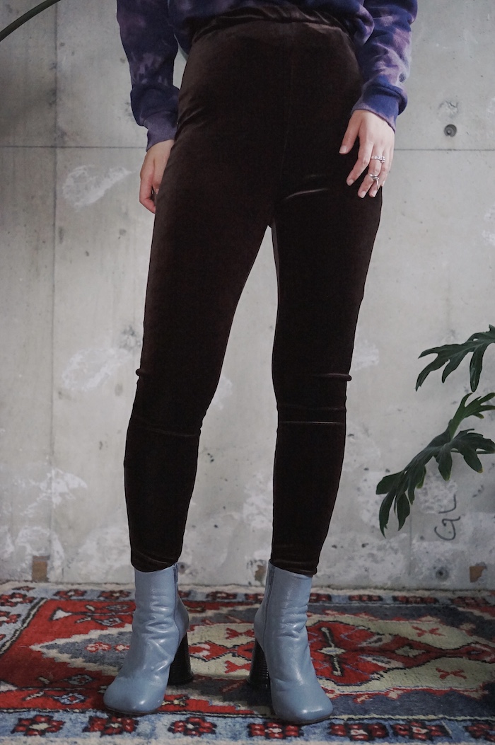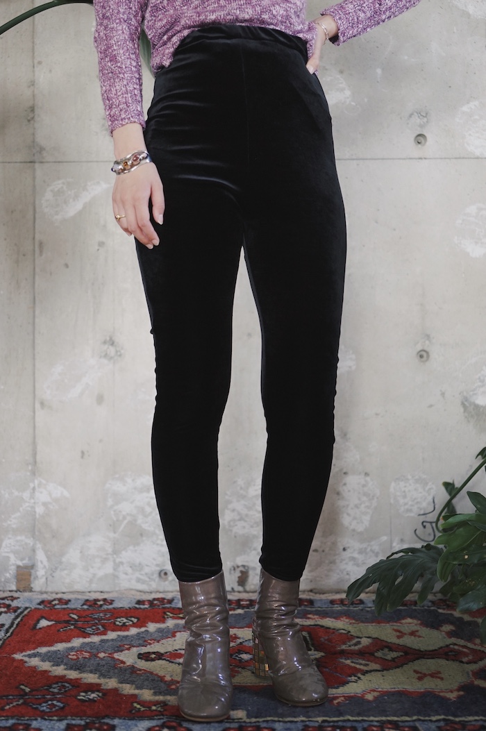 光沢が美しく高級感のあるベロア素材を使用したスキニーボトム。