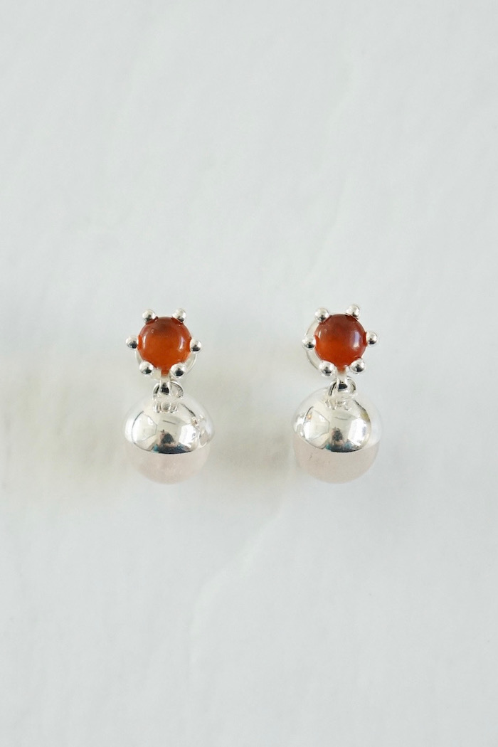 先端がぷくっと丸いシェイプの石留めにセッティングされた