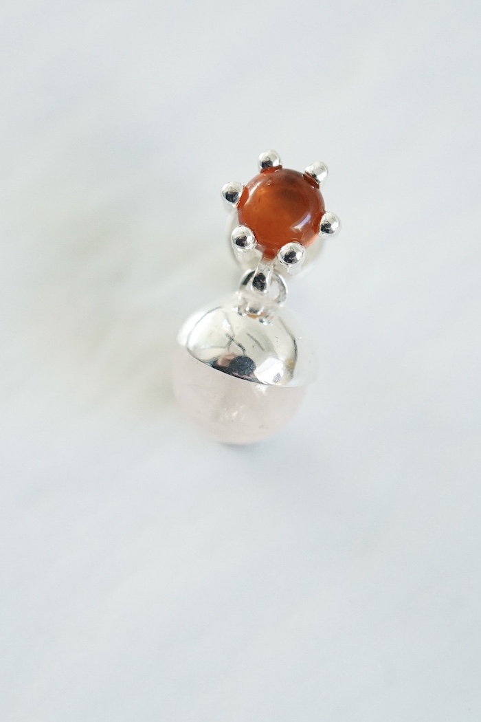 Sterling silver、5mmアンバー(琥珀)、8mmローズクォーツ
