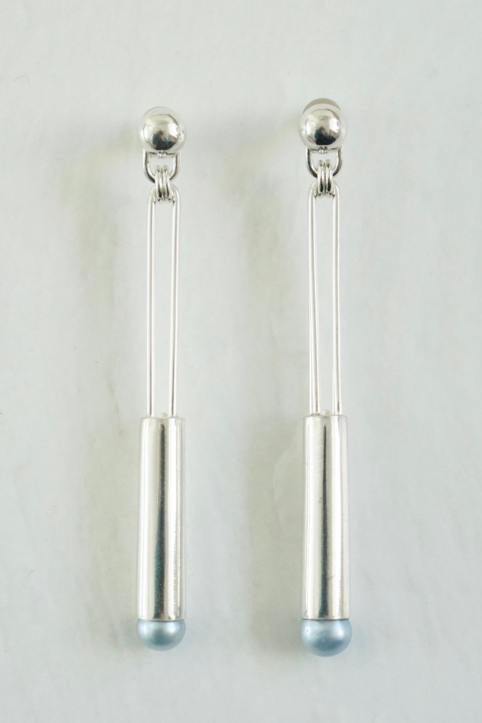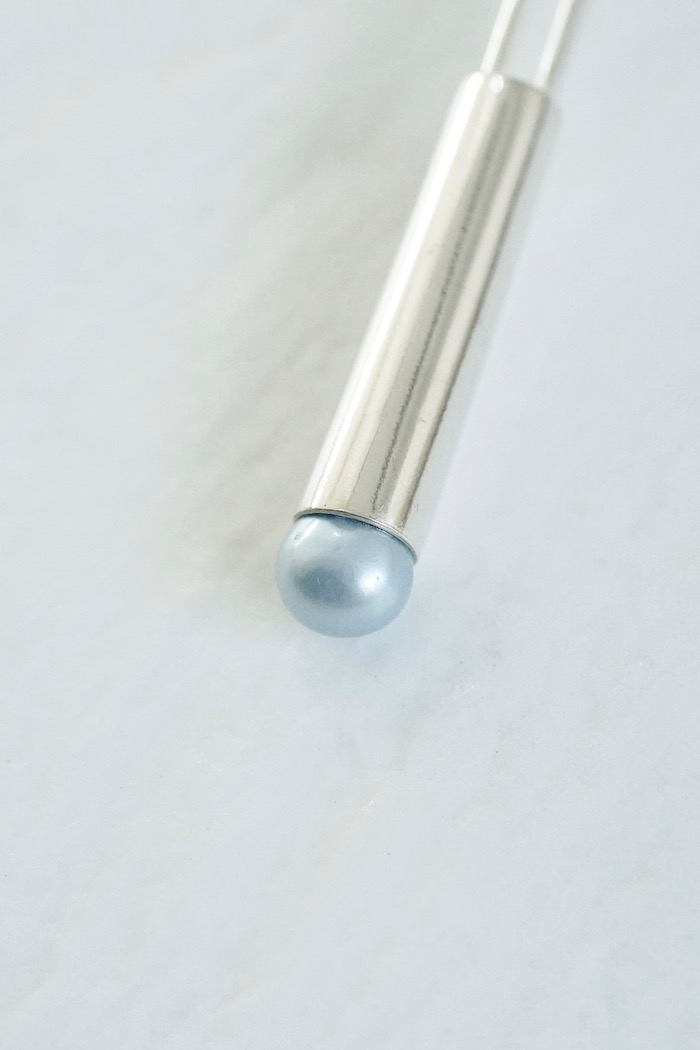 淡いブルーの繊細なパールのコントラストが美しいピアス。
