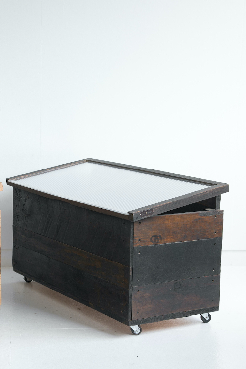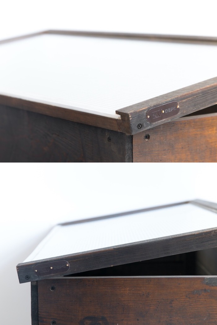 こちらはガラス製古建具を蓋に使用したONE-OFF EDITIONです。ポリカーボネート蓋を使用したタイプはこちら