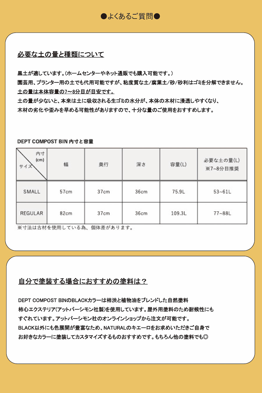 DEPT COMPOST BINは中に黒土を入れる箱型の構造で、お庭がなくても、