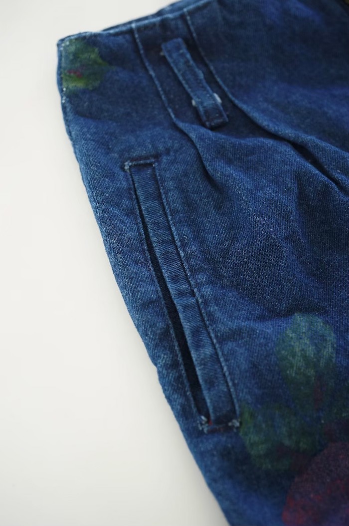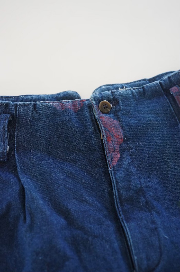 【FINAL SALE】"Dead stock" rose printed denim short pants