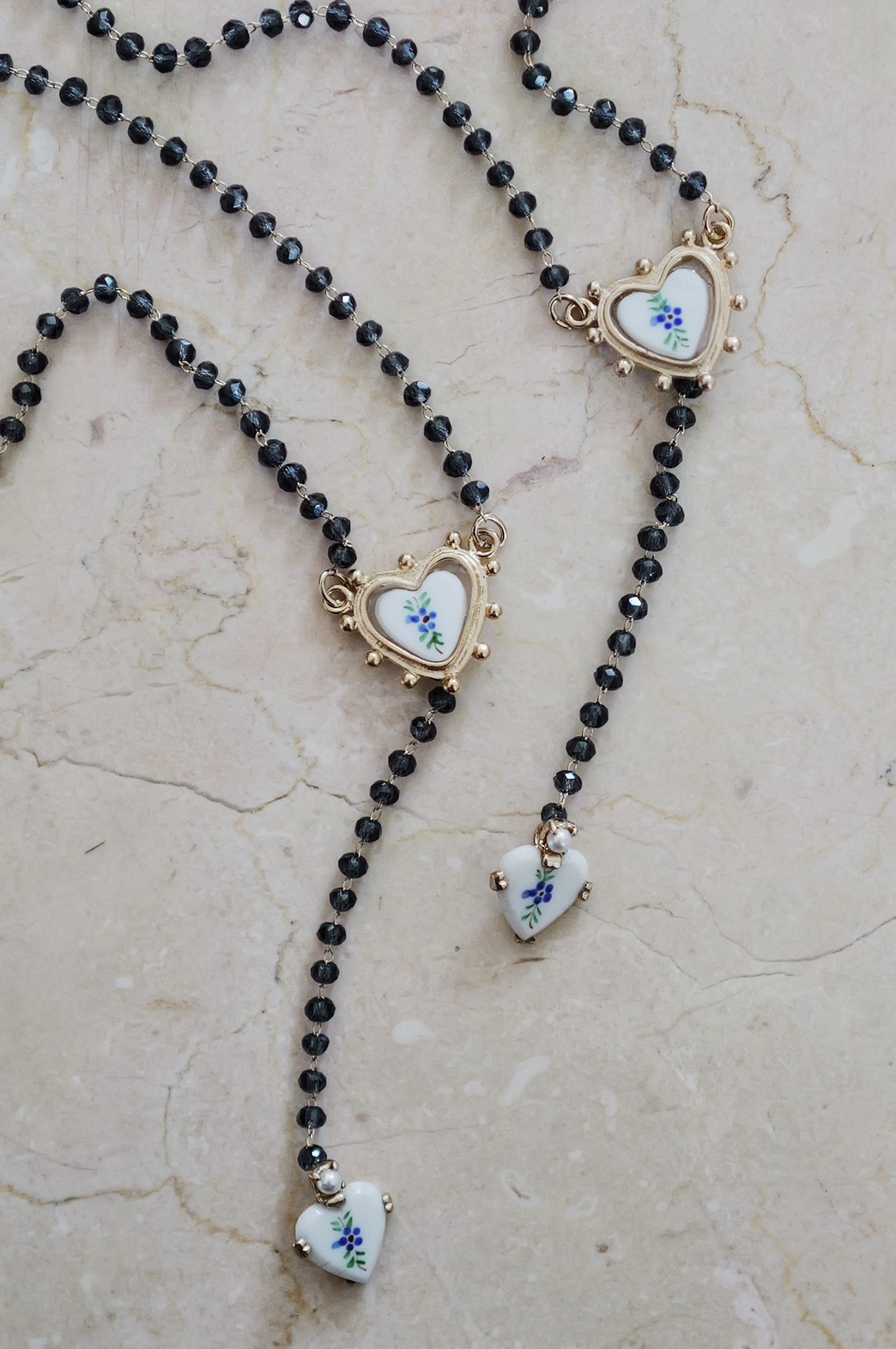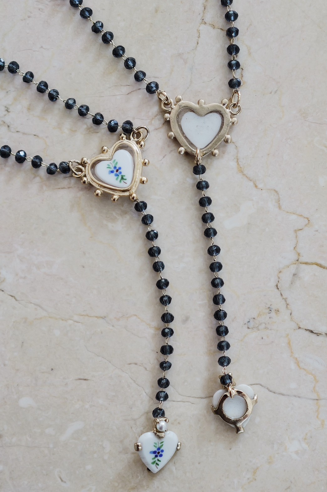 小粒のガラスビーズチェーンとハートのセラミックモチーフを