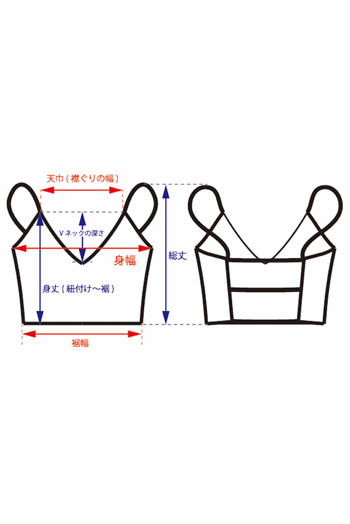 身丈(紐付け~裾) | 天巾(襟ぐりの幅) |