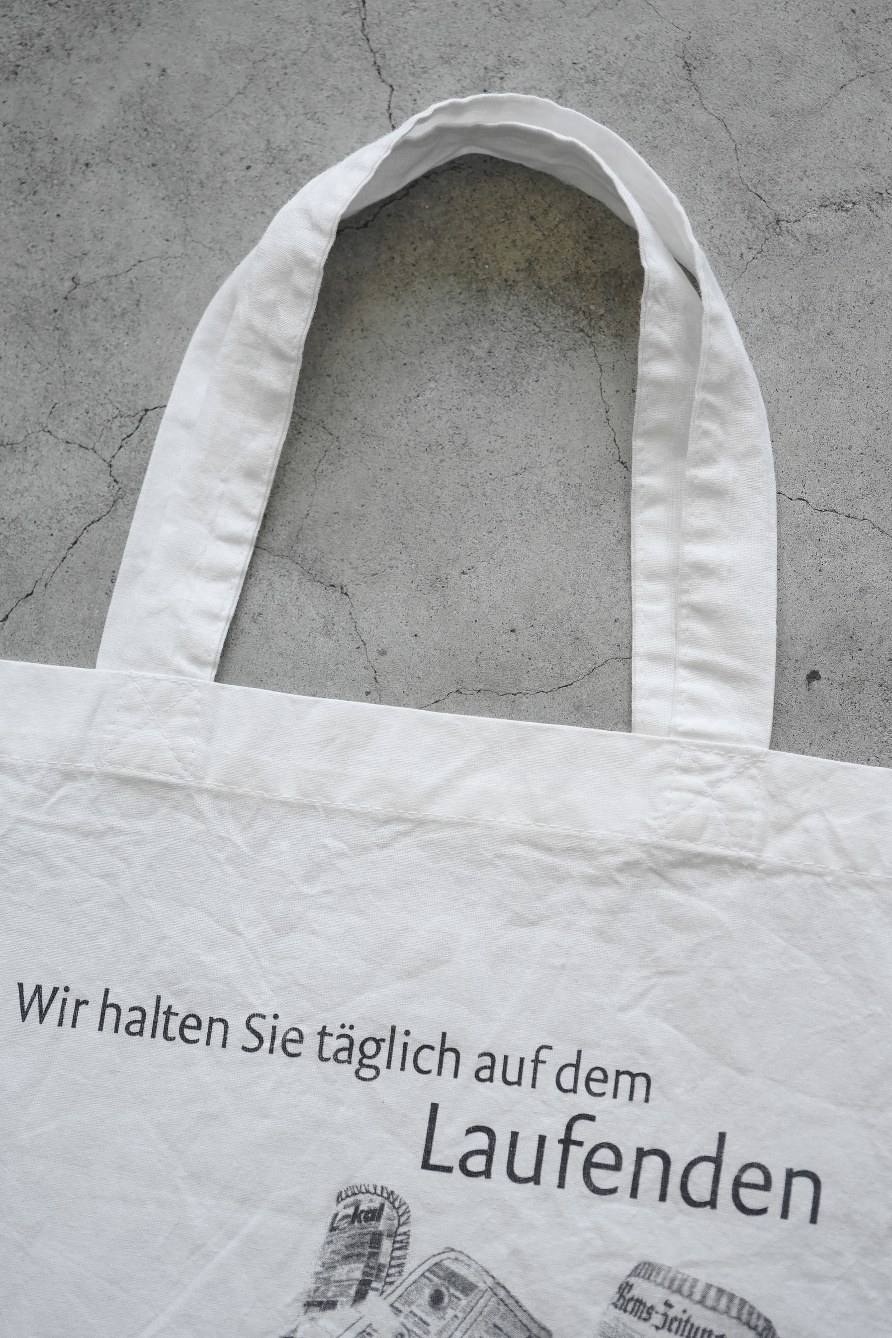 様々な国のビンテージエコバッグに、藻を原料としたインクでDEPTロゴをプリントしました。