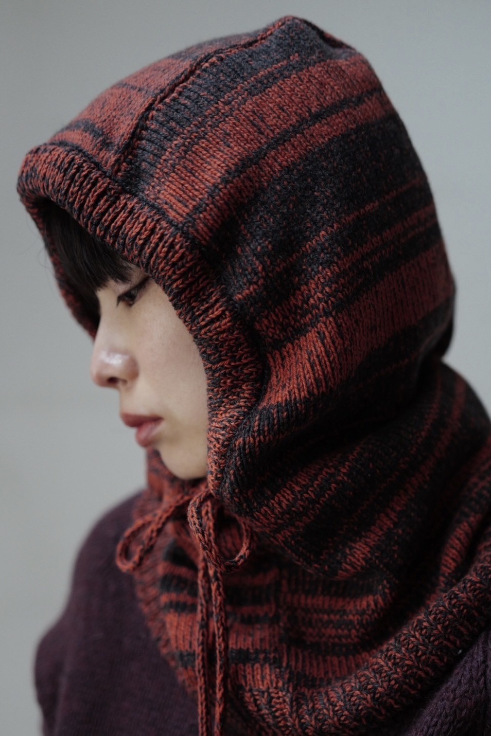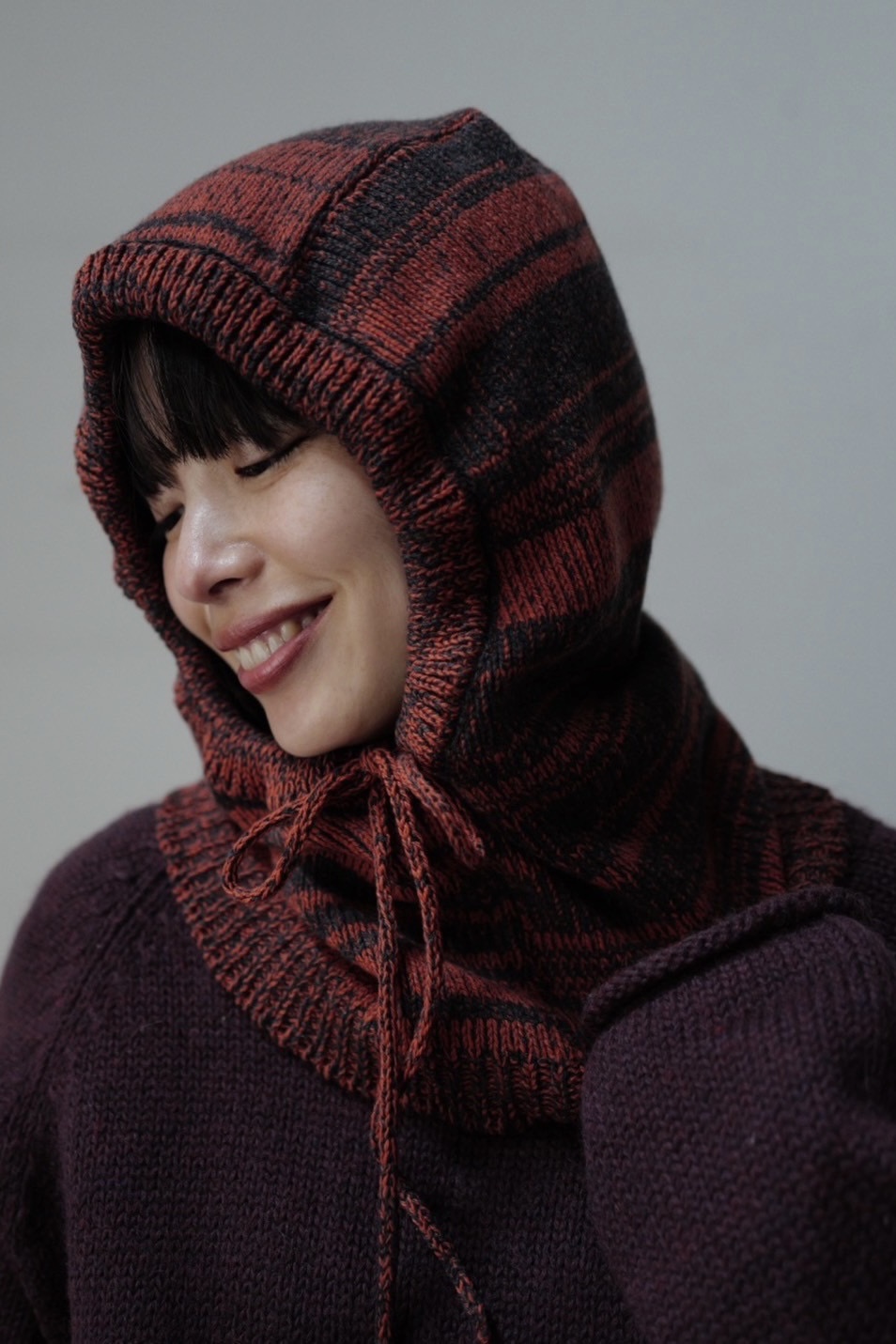 Recycled Cashmere Balaclava/ORANGE×CHARCOAL