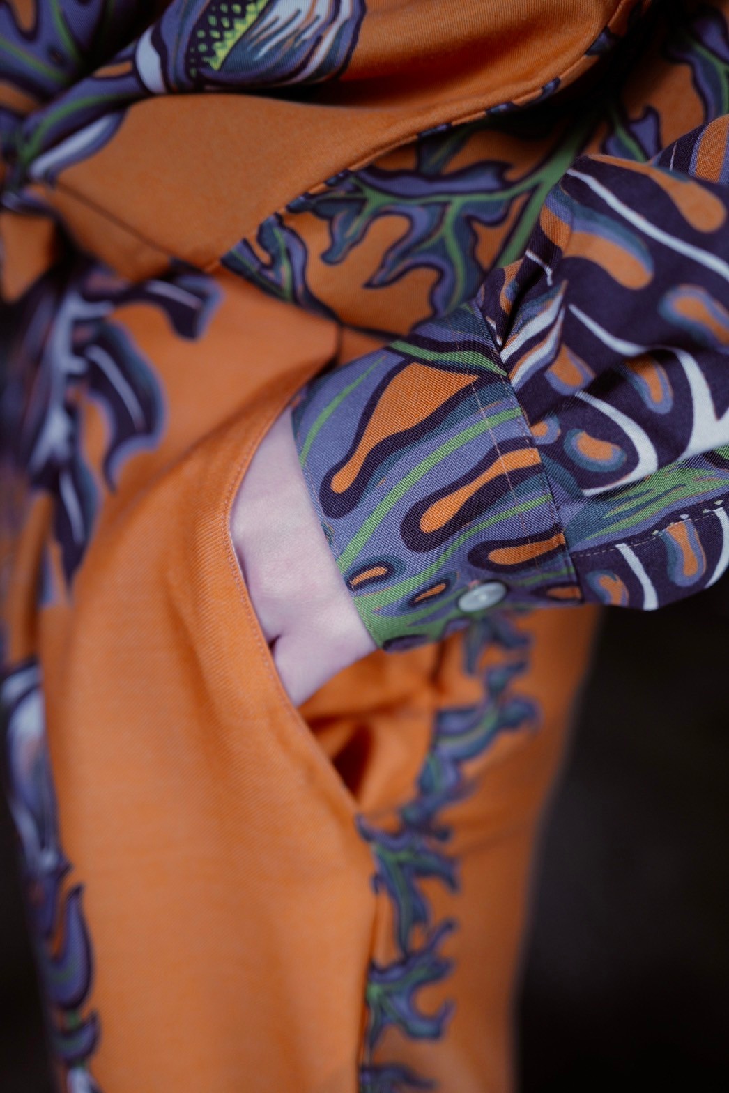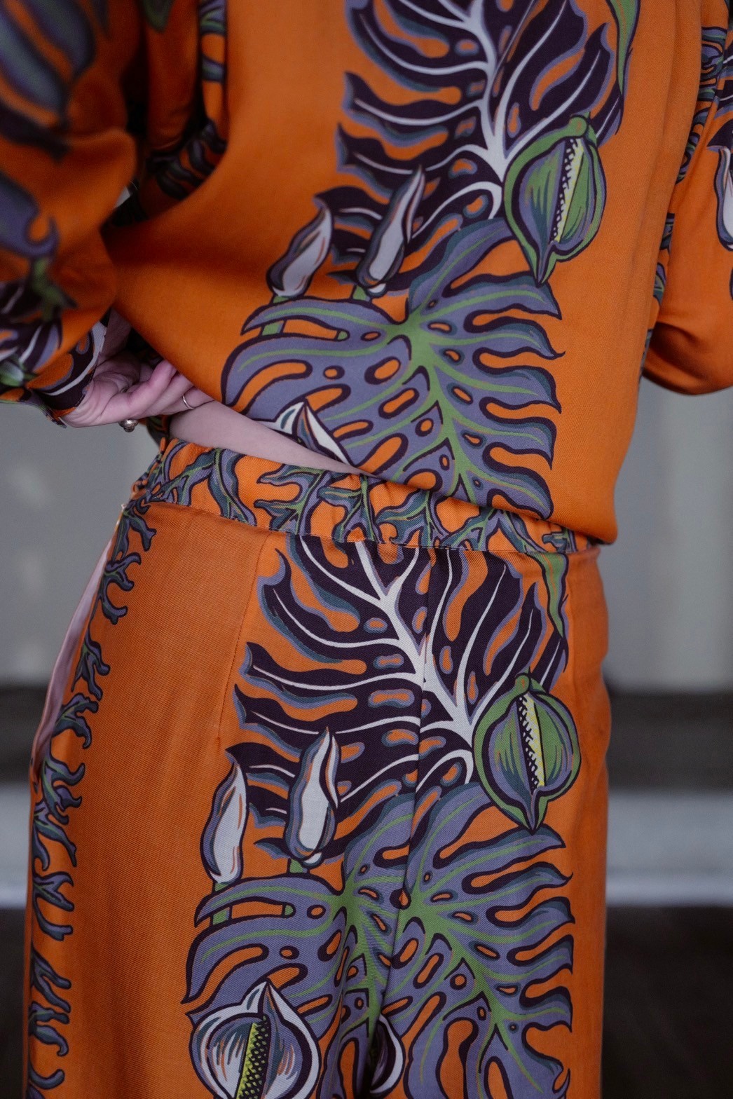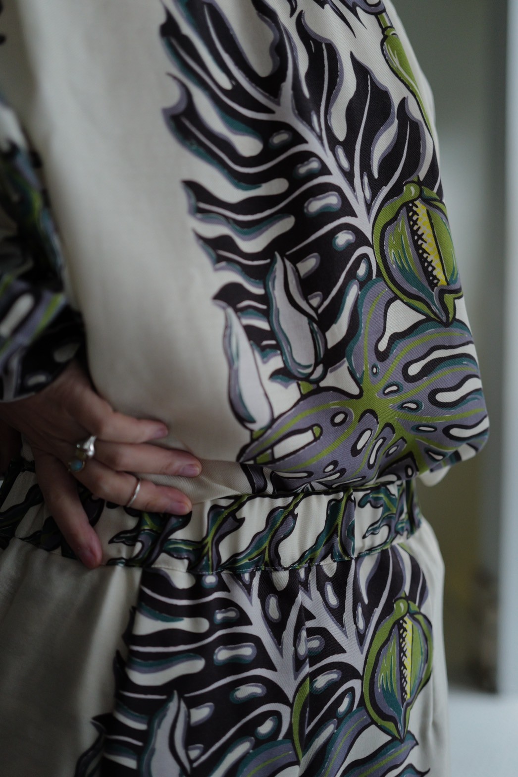モンステラのグラフィックとリヨセルのとろりとした落ち感が際立つよう