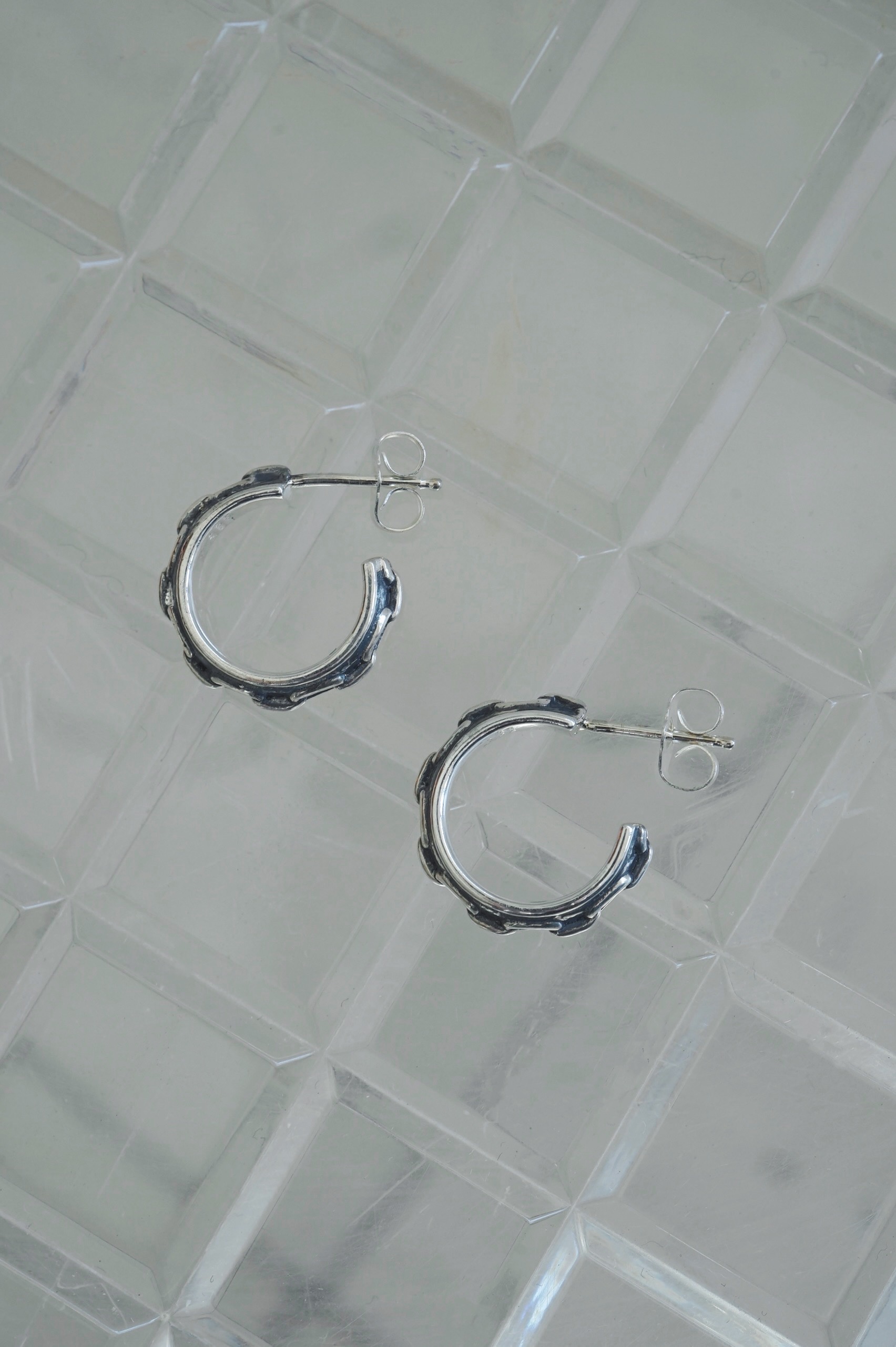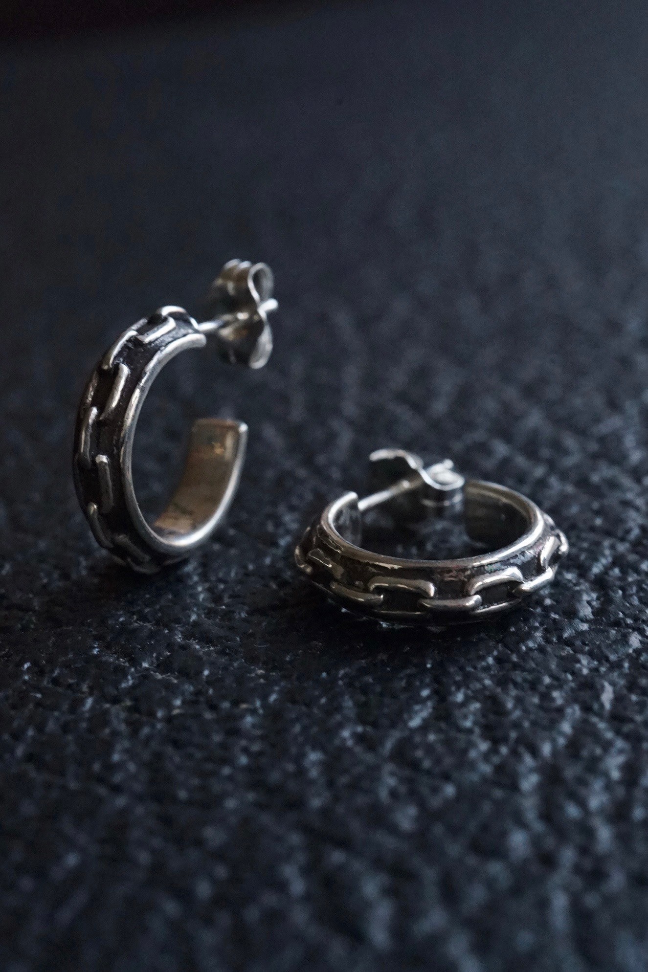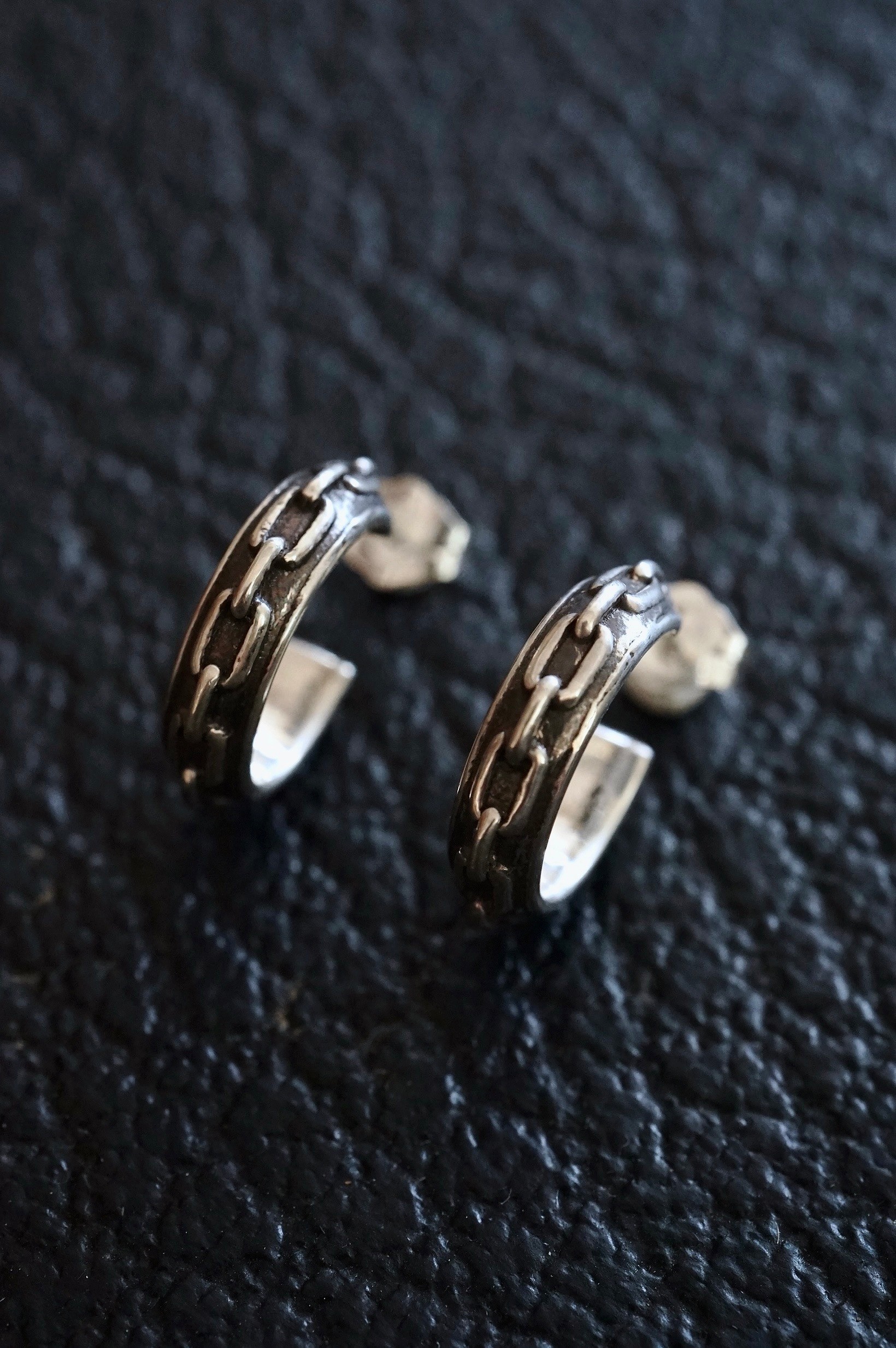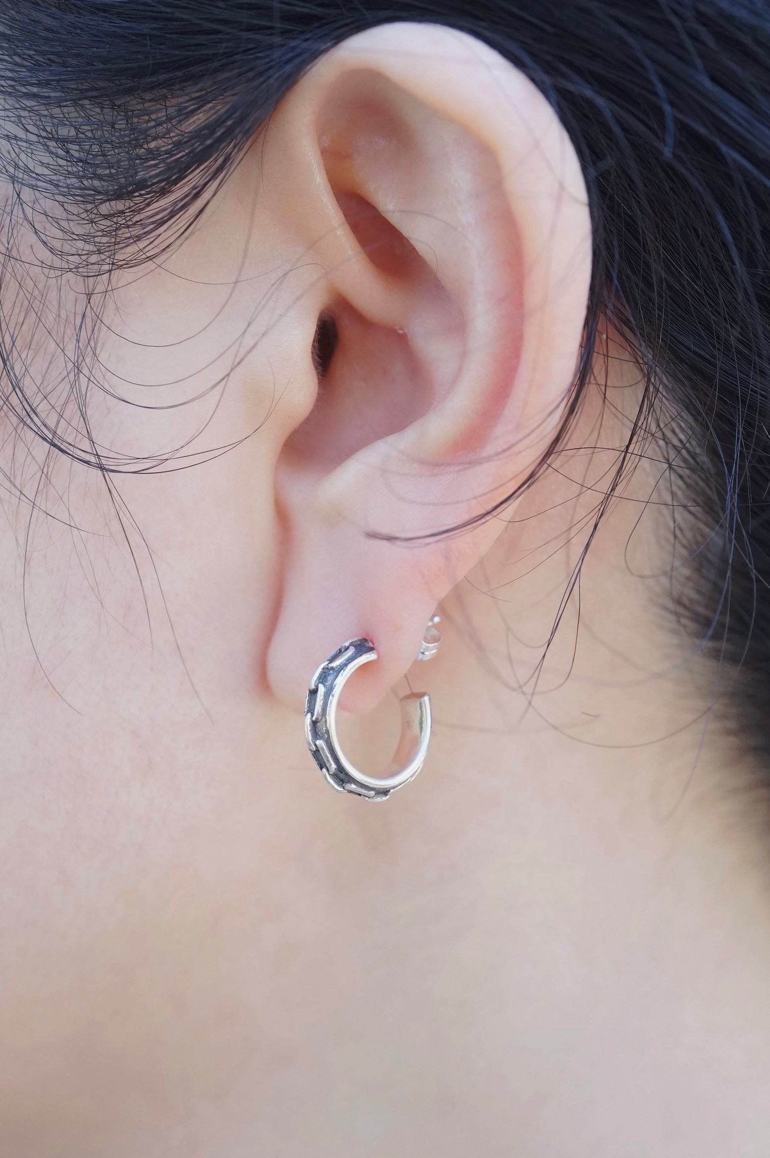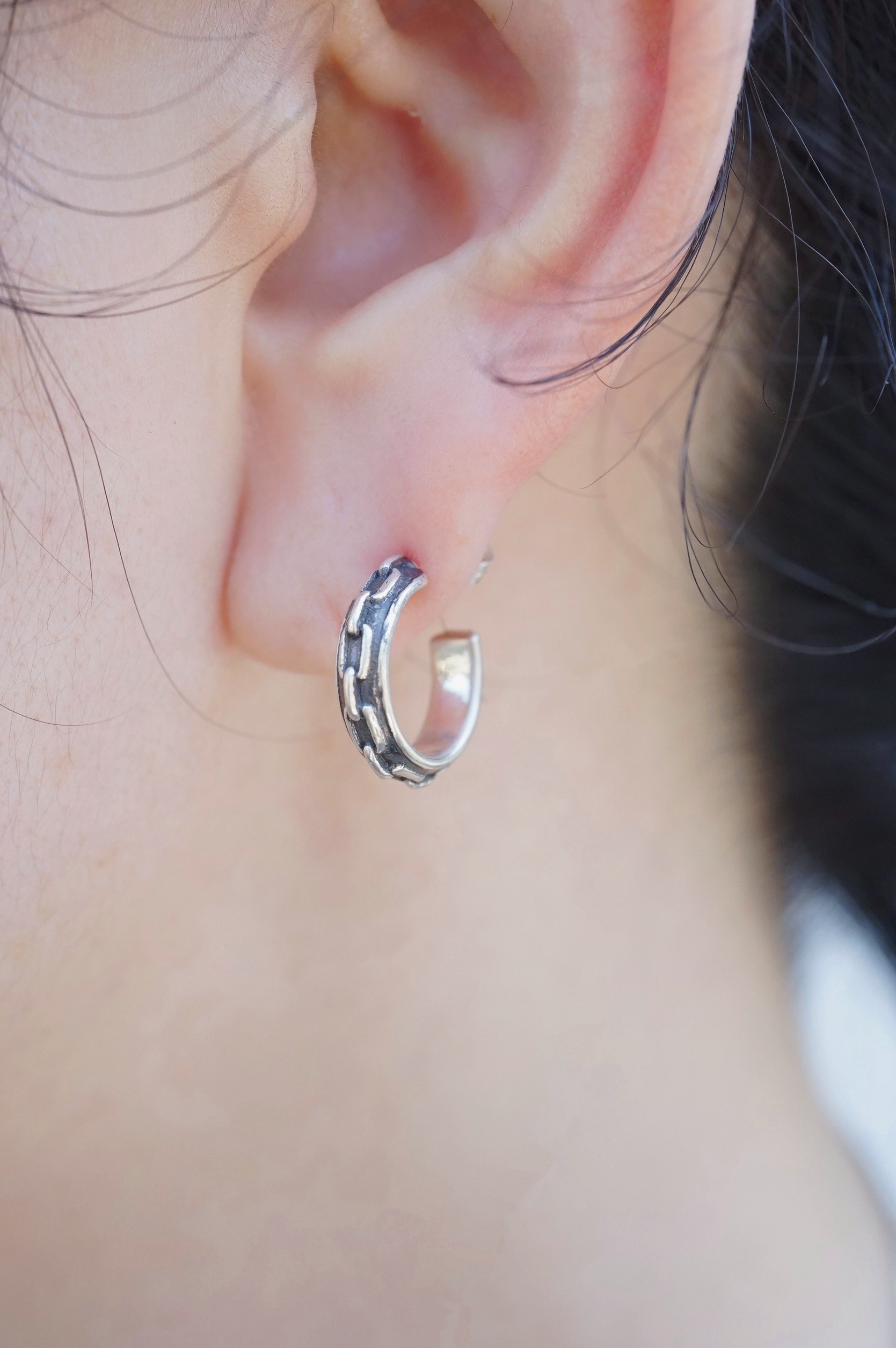甲丸フープの表面にチェーン模様が施されたピアス。