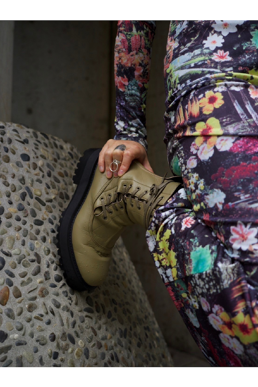 竹の間伐材を原料としたバイオヴィーガンレザーのブーツが